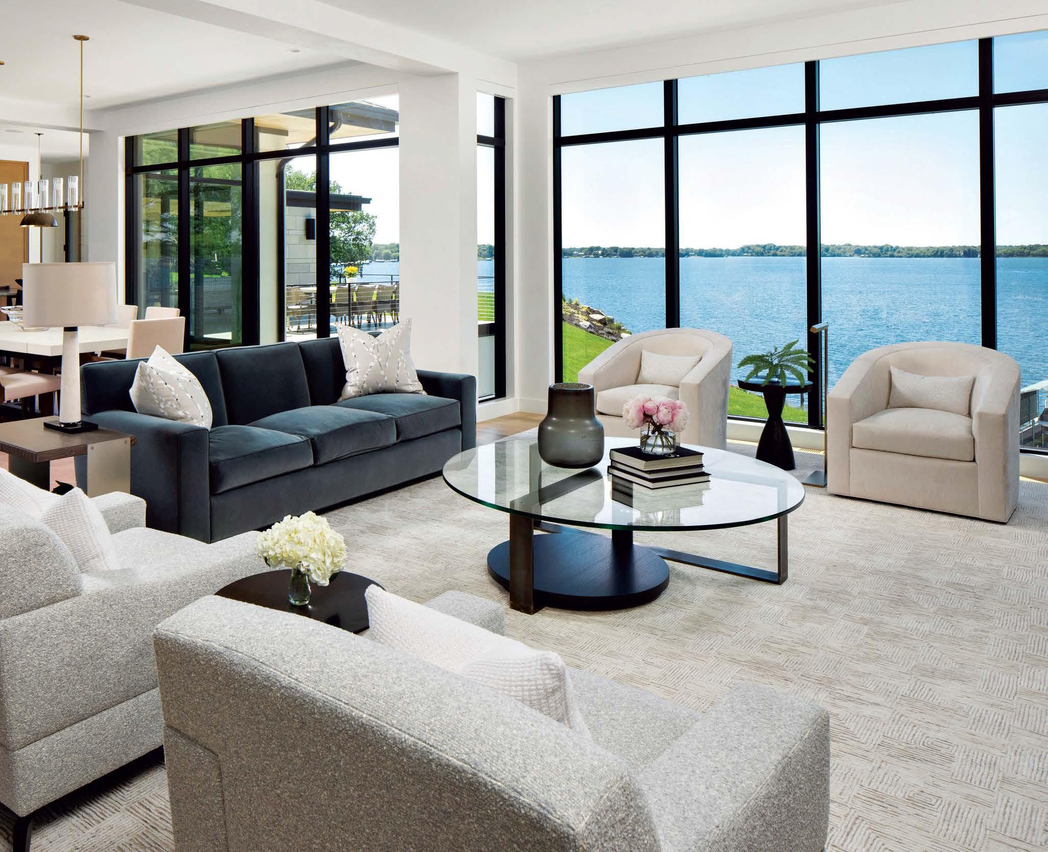 “This home is so architecturally prominent and open,” states Andrews, “but there’s plenty of intimate spaces within it too.” Creating that intimacy, even within the residence’s grandest rooms, is where the designer shines. See how the airy, spacious living area’s seating arrangement is styled as a contemporary conversation pit (sans step-down), with mirrors cleverly hung high and angled to reflect the scene. Under his eye, the furnishings play off transitional styles: “Nothing is overly modern or overly traditional,” he notes.