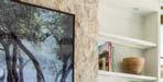 General contractor Andrew Deverian acknowledges that planning for the extensive pocketing doors and walls of windows was one of the home’s significant challenges. “We had to be meticulous about figuring out the precise alignment at the intersecting points so that the material transitions could flow seamlessly,” he notes. The landscaping, a mixture of olive trees, various shrubs, boxwoods and grasses, helps underscore this effort. “A Mediterranean palette captures the essence of a modern coastal retreat and softens the strong lines of the architecture,” says landscape designer Alyssa Pettersen, adding that two existing boulders were also neatly incorporated.