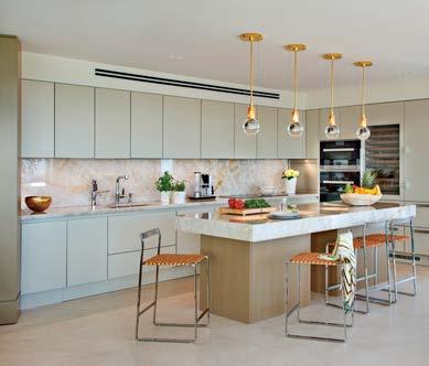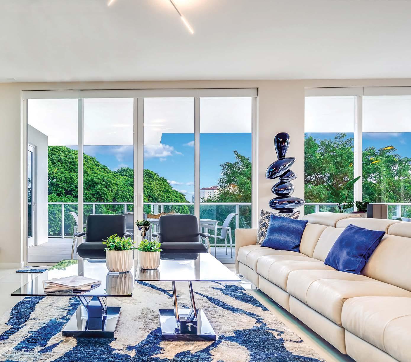 ON THE COVER: Designers Josh Evan and Michael Edward Moirano defined a Miami Beach living area using a screen by artist John-Paul Philippe, commissioned through Cristina Grajales Gallery. The Egg Collective coffee table, Stahl + Band sectional and Mitchell Denburg Collection rug gather with a vintage chandelier and Jindřich Halabala armchairs from 1stdibs. Page 148