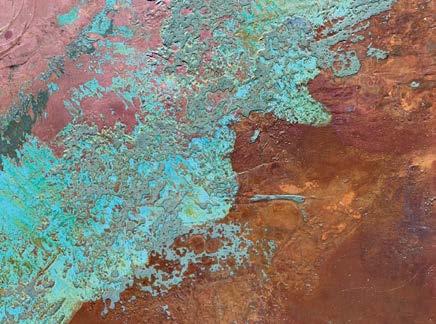 The Delray Beach artist elicits texture from the paint itself. “I’m trying to get the signature characteristic of what that color wants to say,” she explains. “Whites give me these luscious, soft ripples, but dark greens give me more of a cracking experience. I found that if I studied just one color at a time, the color would tell a story.”