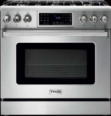THOR Kitchen: a complete line of full-featured, superbly crafted, stainless steel warriors. Dual fuel, gas and electric options. 4,000–18,000 BTU burners. Infrared broilers. LED panel lights. Continuous cast iron grates. Heavy-duty tilt panel controls. Massive capacities. LightningBoil™ speed. Brilliant blue porcelain oven interiors. And more. The real value in pro-grade performance.