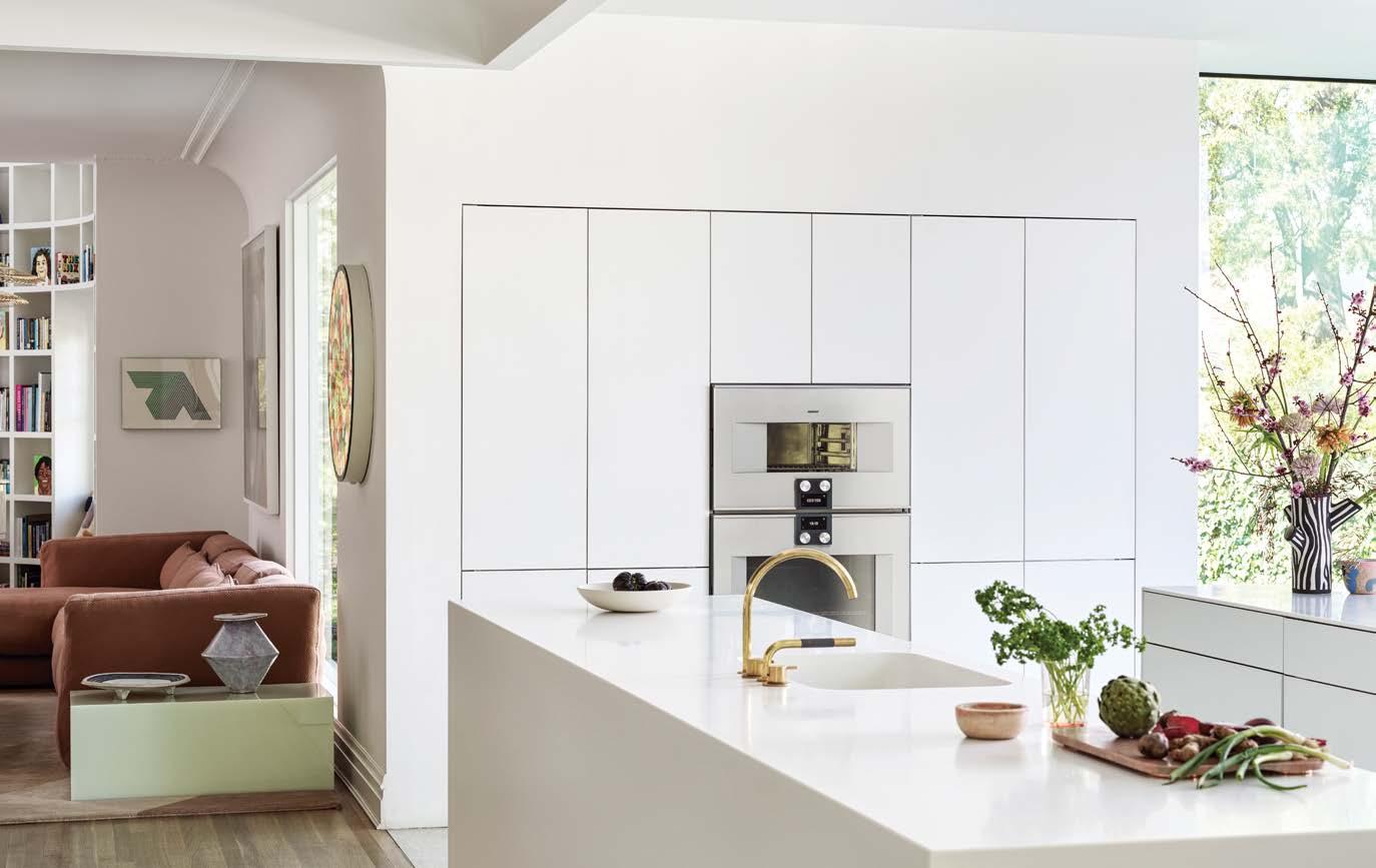 “We wanted to disrupt what you typically see in transitional homes by going bolder,” the wife notes. To realize this vision, designer Cori Pfaff focused on the clients’ defining stylistic influences: the work of Lebanese luminary Claude Missir, a devotee of 1930s French modernism; and the Museum of Modern Art in Manhattan, both the gravitas of the galleries and the exuberant energy of its famous shop. “The goal was to juxtapose artdriven sophistication with a feeling of playfulness,” Pfaff explains.