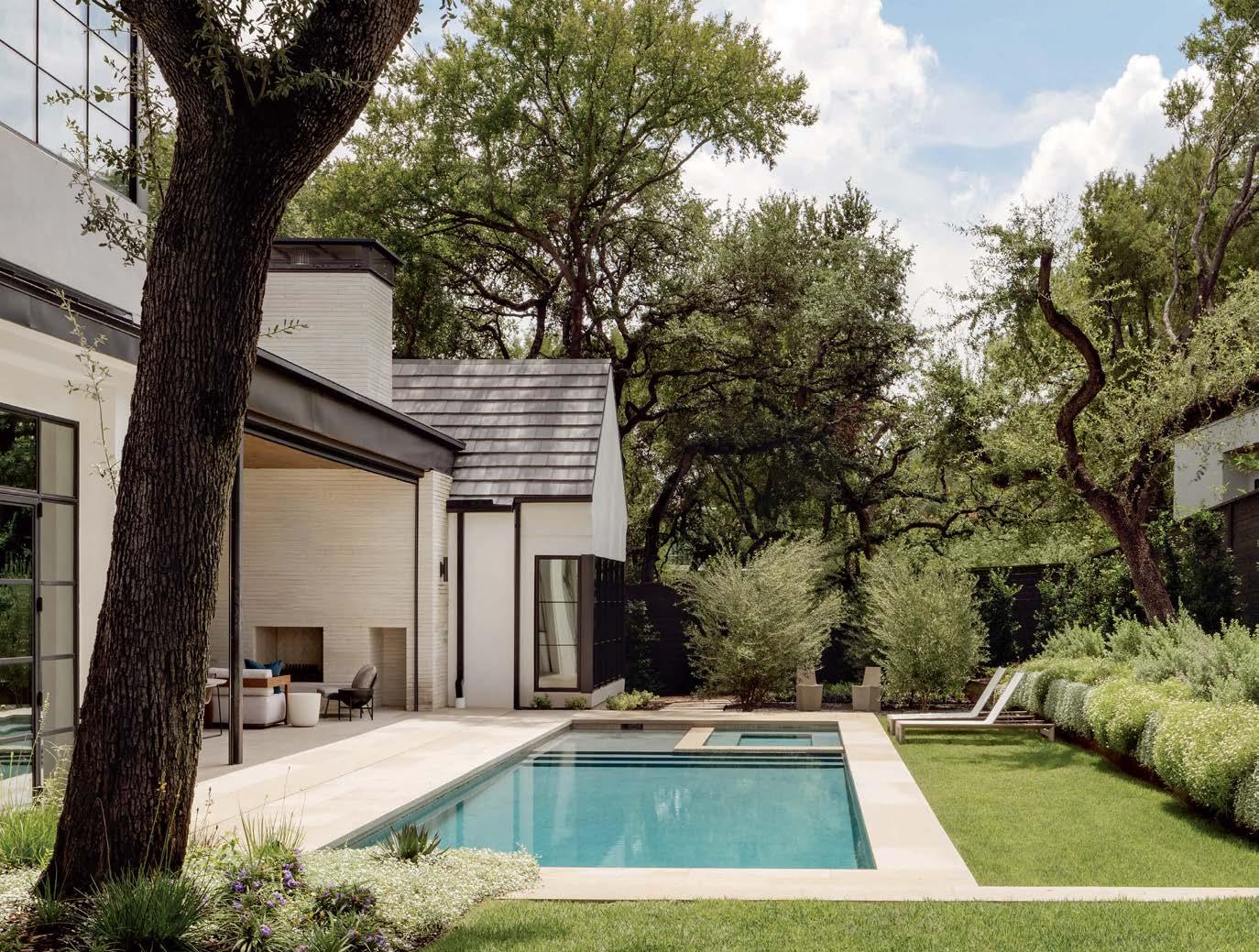 Outside, Pfaff selected minimalist furnishings in neutral tones to echo landscape designer Roy Adams’ plantings, while not distracting from the interiors. And though there’s an outdoor kitchen and pool to entertain guests, the exterior spaces are meant to be contemplative in an ode to Japanese Zen gardens. “We’d always been so transient that we never had the luxury of truly settling down,” the wife adds. “It’s been a treat to tailor each space to how we actually use it.”