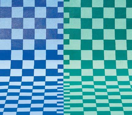 The artist’s past life as a graphic designer is discernible in the composition of her