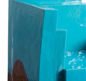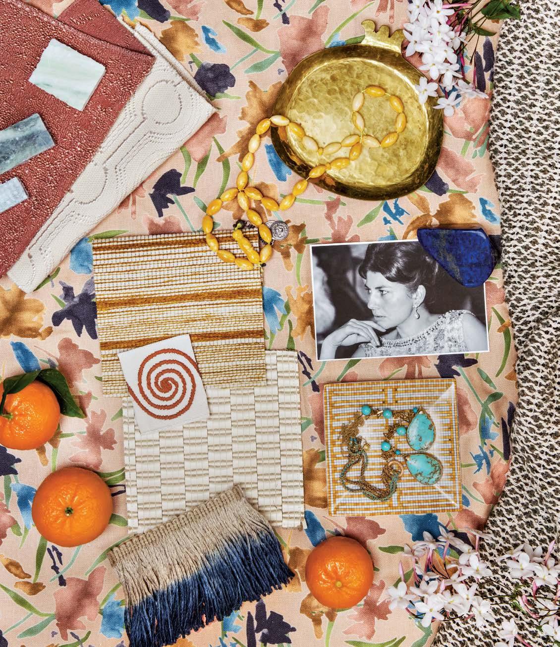 While it proudly displays its Mediterranean credentials, the home is anything but a period recreation. Wallpapers in a profusion of prints— like the mermaids and seahorses frolicking in the daughter’s bathroom, the clay-pot motif adorning the pantry and the floral in the library—keep things fresh. There’s a level of practicality too: The living room features sofas in an indooroutdoor performance fabric and a rug made of jute squares that are stitched together and can each be easily replaced should wear occur.