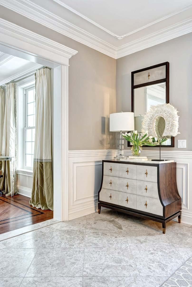 “There’s something really appealing about the Art Deco era and its outlook on embracing change,” Tim says. “It was a time to think about comfort, convenience and what easy, elegant living could look like—and that translates to this project.” And no one is happier with the finished push and pull than the clients. “I love the thoughtfulness of every detail and molding, and the utility of how you walk into a room and how it presents itself,” the wife shares. “It’s just perfect.”