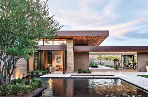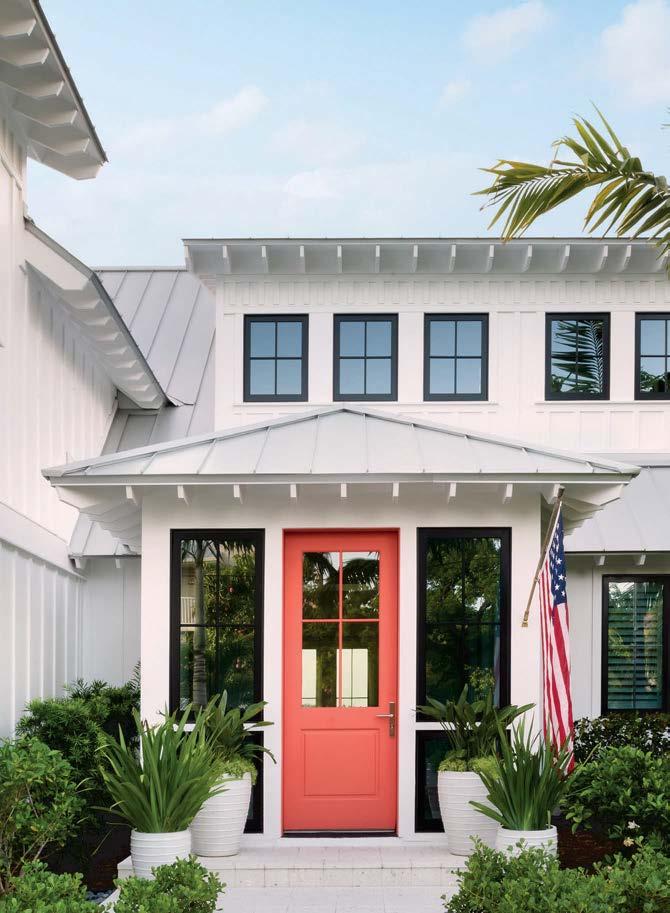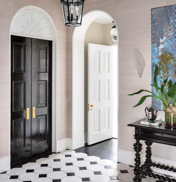 stain the terra-cotta roof black and refinish the stucco to a brilliant white,” Hilton says. “Everyone thought the previous pink exterior needed to go,” he adds, commending designer Robert Rizzo’s suggestion of the black-and-white concept that was chosen to complement the more modern interiors the clients wanted. “It was a dramatic transformation,” the architect notes.