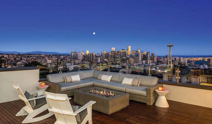 Top Iconic Sleepless in Seattle lake living with all of the latest and most luxurious amenities. Left This expansive rooftop deck has endless views of downtown, Gas Works and the Olympic Mountains.