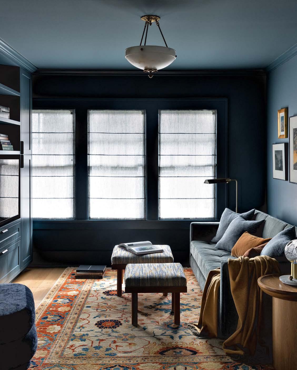 ON THE COVER: Designer Charlie Hellstern freshened a Seattle classic with a custom sofa covered in a Rogers & Goffigon mohair velvet that curves around a coffee table crafted by Jonathan Pauls, Inc. They are joined by a Tai Ping rug, John Wigmore ceramic sconces and vintage Edward Wormley lounge chairs.