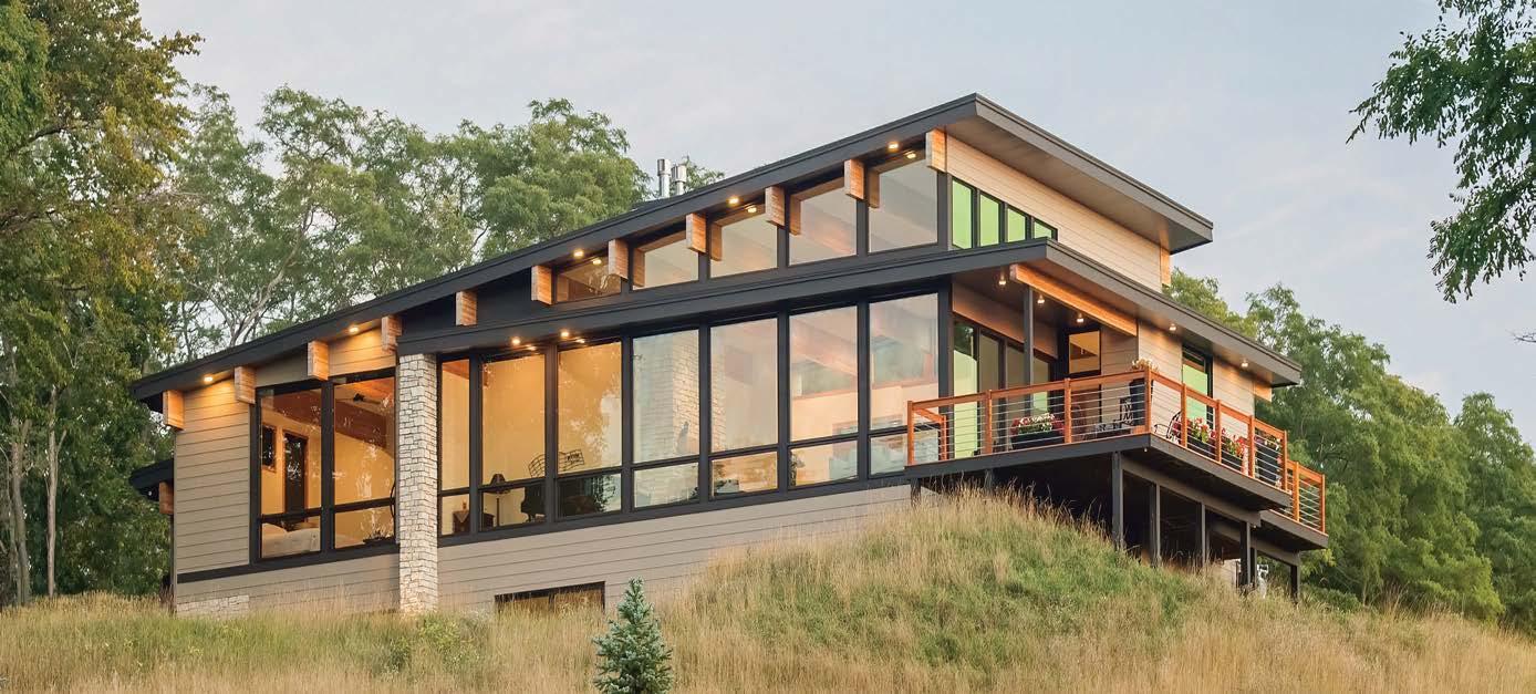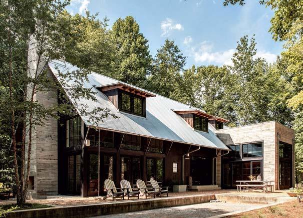 bald eagles often perch on snags. There’s always something to watch,” the interior designer says. To keep the focus on the wildlife during the day, the room is mostly unadorned, but key pieces (a diaphanous pendant light, sculptural floor lamp and photograph by Robert Mapplethorpe) “create some drama at night,” he describes.