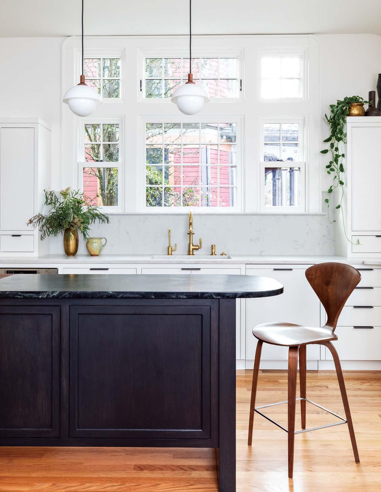 f you ask Jennifer Leatherman Wong about an object in her recently redesigned Seattle home, she’s likely to tell you a fascinating story— a natural reaction for an author of historical fiction. Take, for instance, the oversize 19th-century portrait of a woman hanging in the living room. “We’re pretending it’s my great-grandmother,” Jennifer muses, noting that she has similar tales for many of the pieces that fill the dwelling she shares with her husband, Tracy. The sum of these imagined histories is a residence that’s imbued with a personal and soulful spirit.