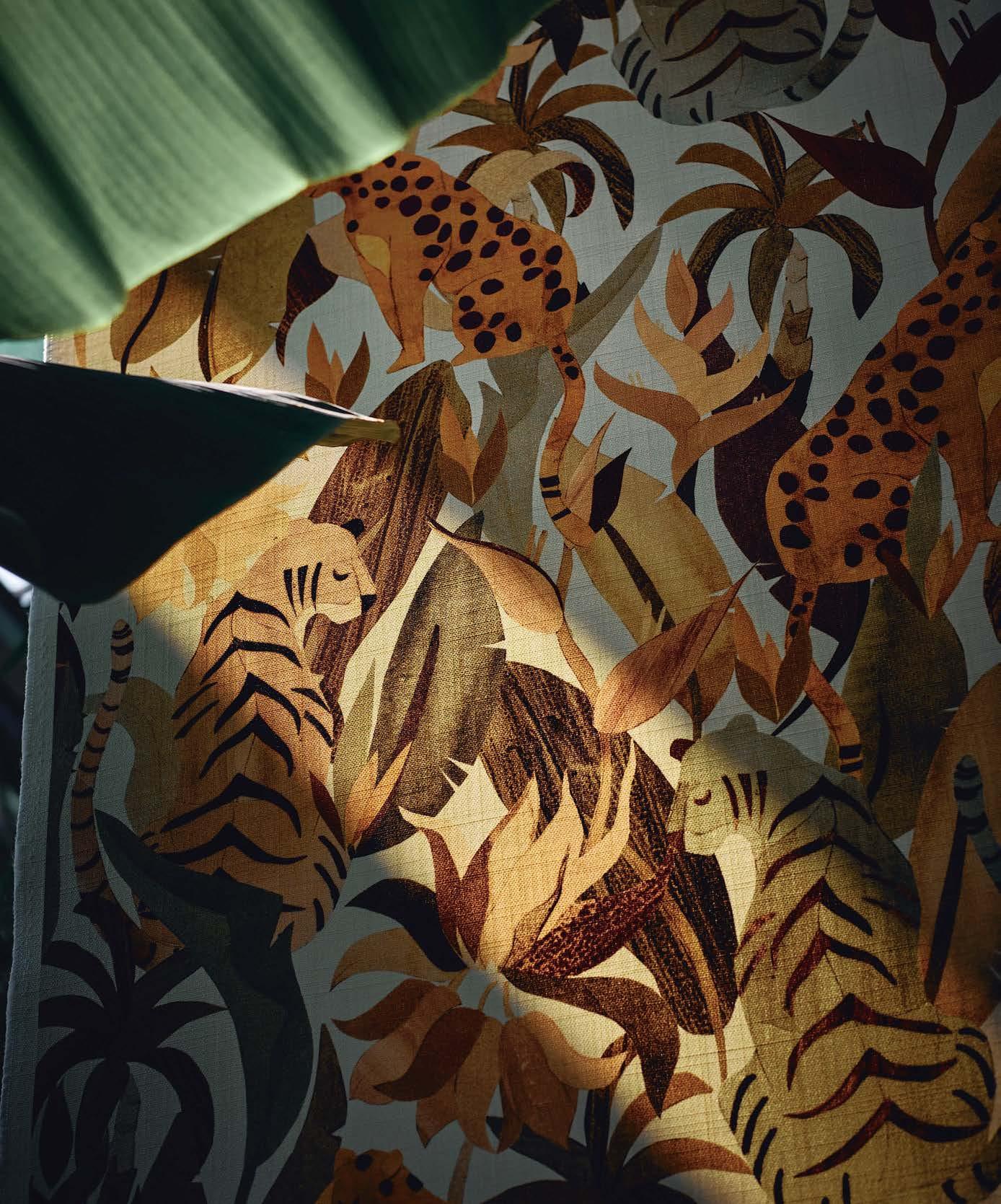While he sees the entire home as a celebration of everything he enjoys about design, Grevstad says that the garden room—a glazed and skylit structure—is one of his favorite spaces. “A magnificent landscape surrounds this home, and I wanted to celebrate it from the interior,” he explains. The team designed this room with a cocktail bar to make it a perfect place for parties and added several indoor trees (ficuses as well as fishtail and Kentia palms). “It almost feels like you are outside,” the designer notes.
