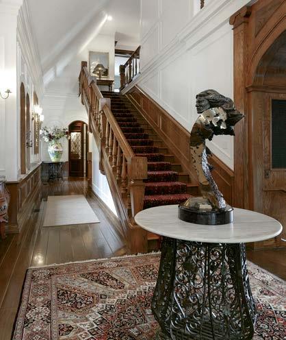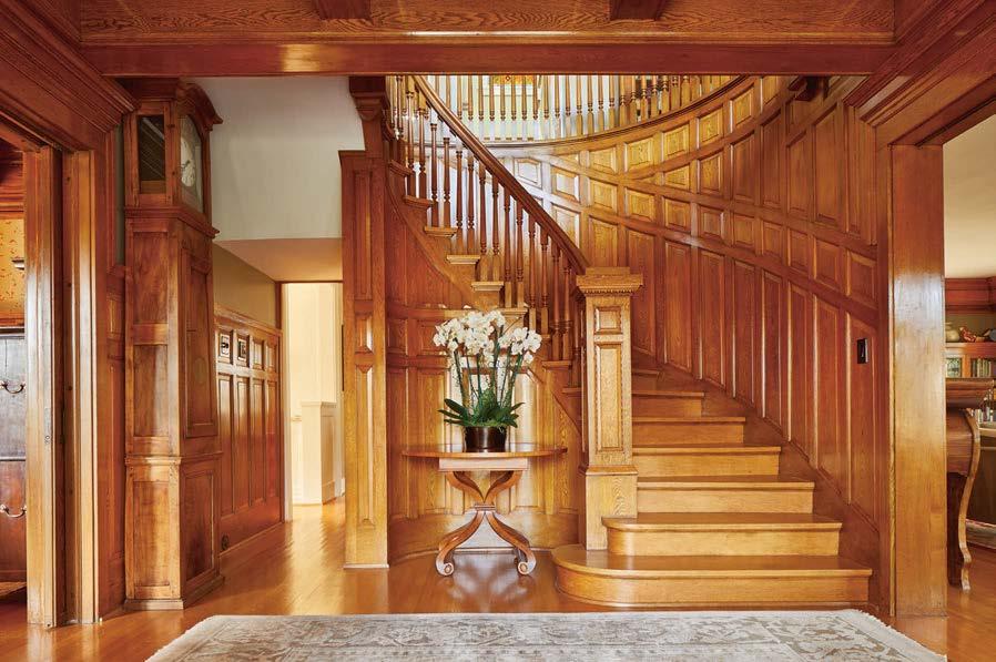 A wood-paneled library became the husband’s office and sun rooms were converted into the wife’s work space and a playroom. The second floor largely retained its existing layout of bedrooms and bathrooms. Shintaffer, however, turned an underused area adjoining the primary bedroom into an intimate family retreat where the couple and their children can cozy up in front of the fireplace and watch television. “It goes to show that a great old house can evolve with each new owner,” she says.