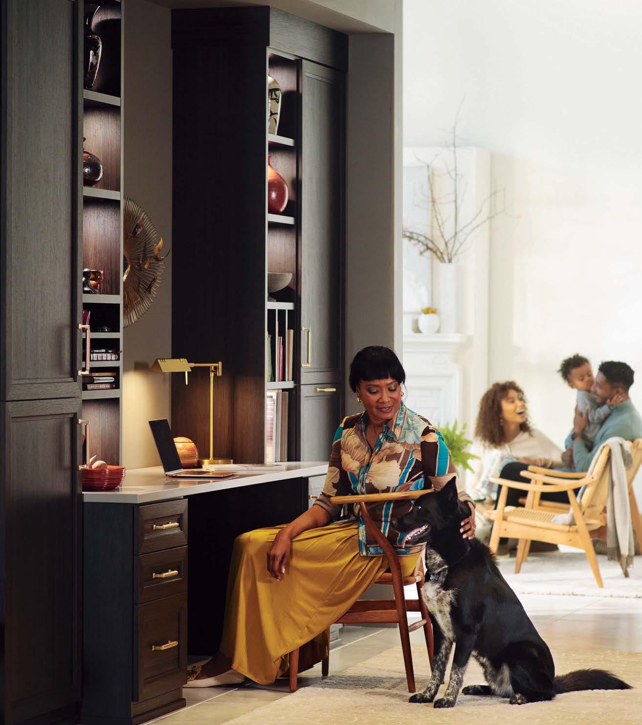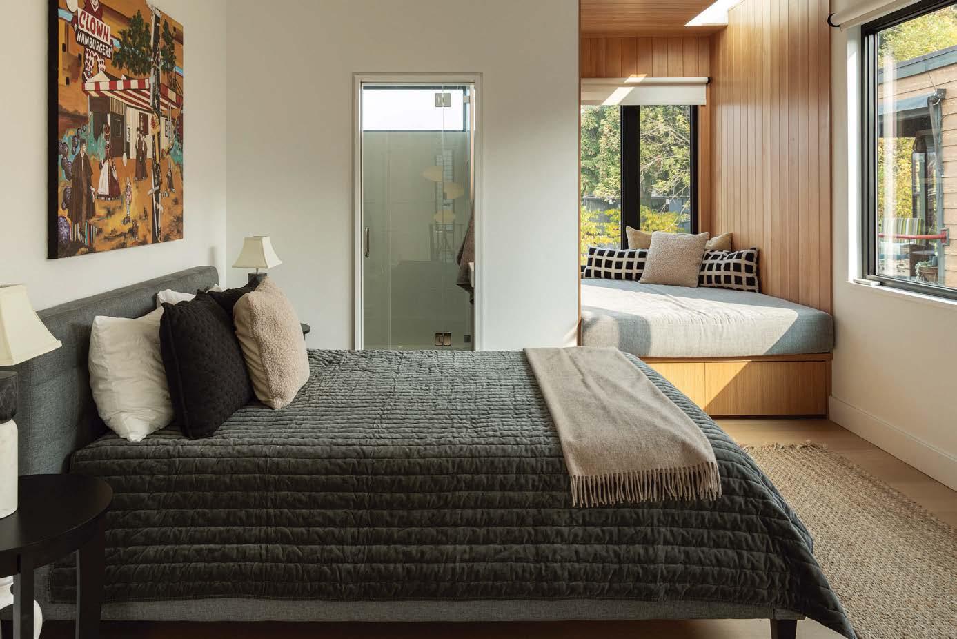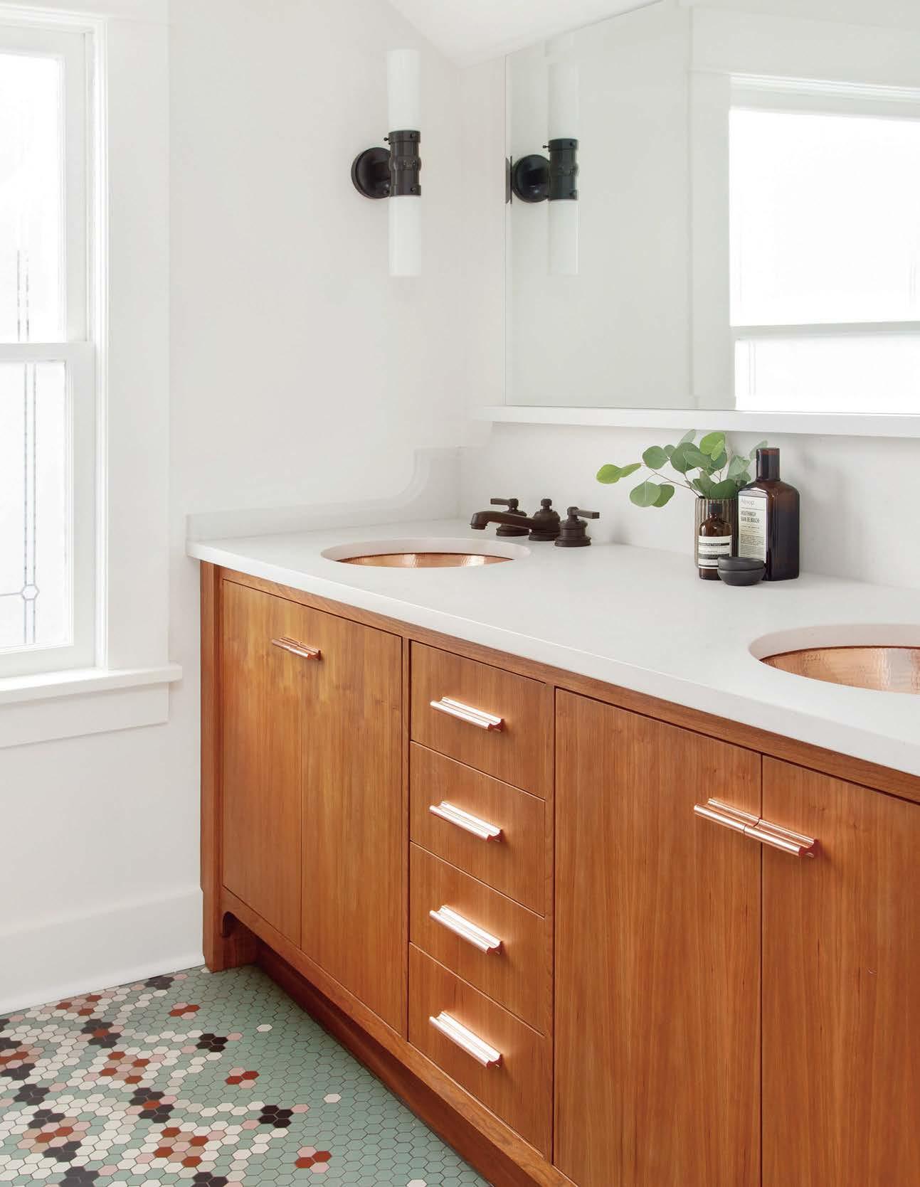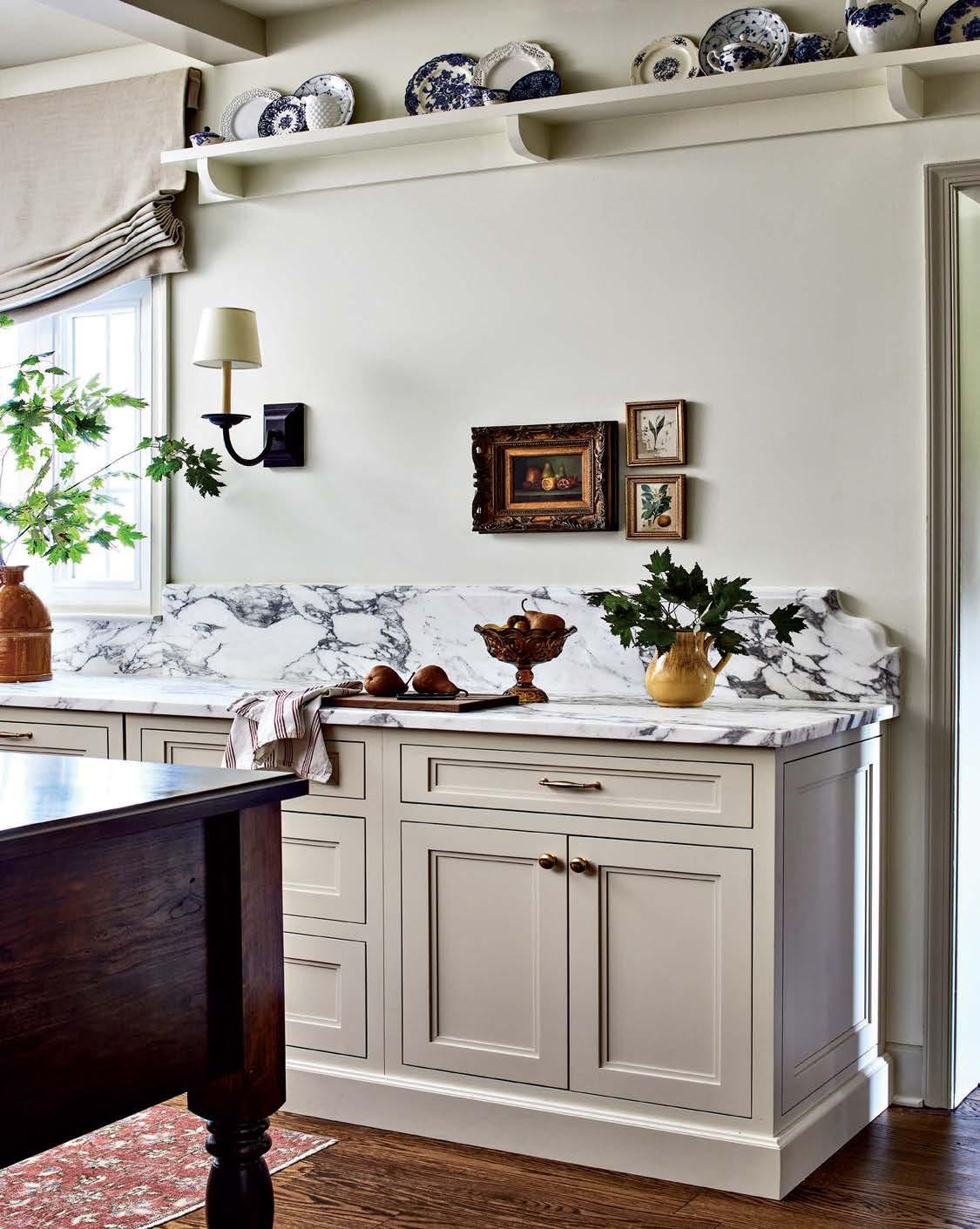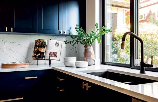 Shintaffer also looked for ways to update the abode by rethinking how its spaces were used. After “loosening up” the formerly cramped and isolated kitchen with open shelving and a familyfriendly breakfast nook, it immediately became a destination. And by dividing the living room into two seating areas, she notes that it “feels bigger because the entire space is well utilized.”