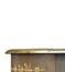 Left: The powder room retained all its original fixtures, cabinetry and flooring. However, the geometric Asteré Lit de Parade wallpaper from Élitis and petrified-wood side table offer reinvigorating accents.