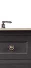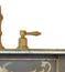 Above: In the redesigned attic bath, a vanity painted Benjamin Moore’s Eternity is accented by stone from Meta Marble & Granite, a Kohler sink and Waterworks taps. The sconces are by Hector Finch, and the floor tile is by Pratt + Larson.