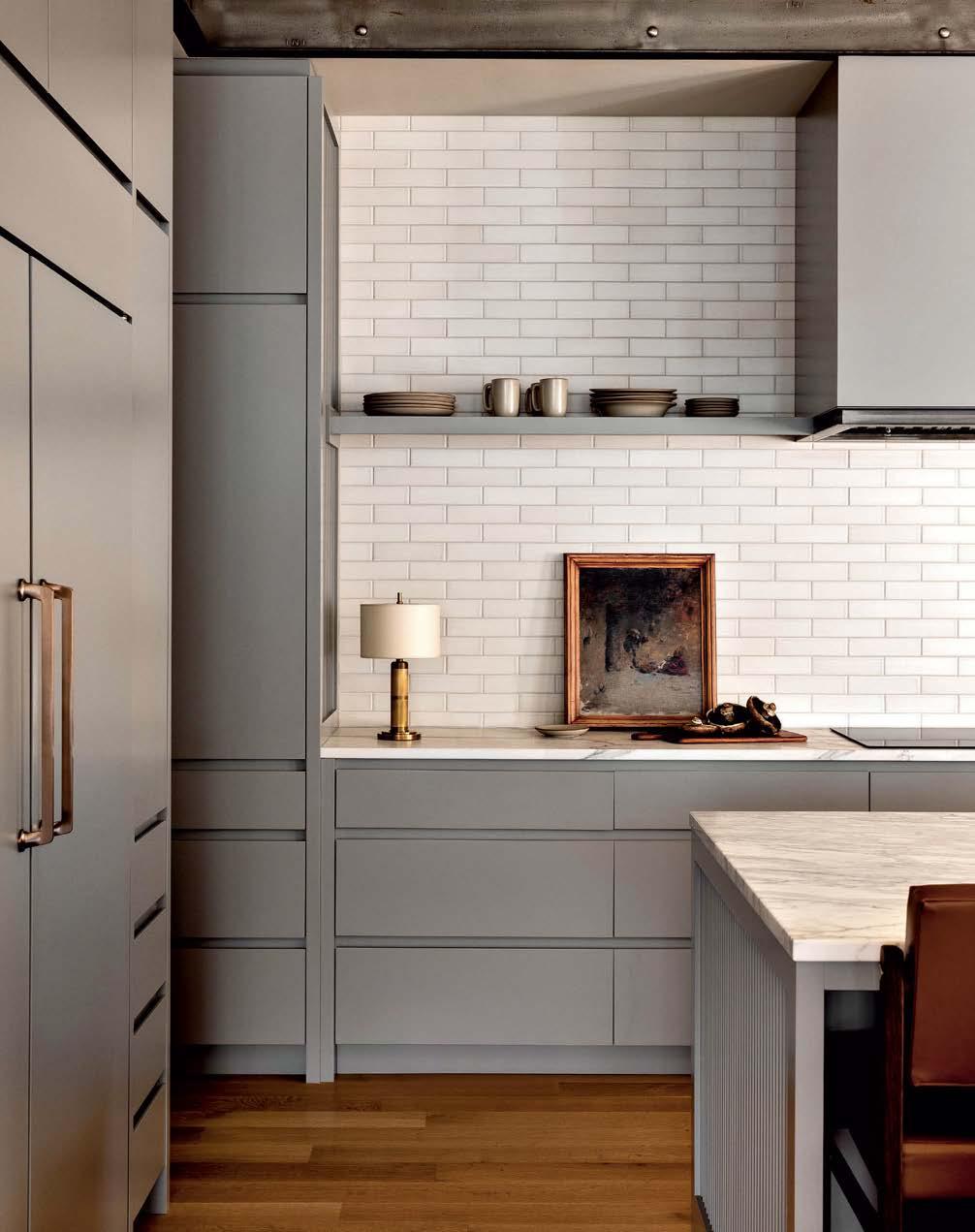 backsplash tile, which Beers placed in a running bond pattern rather than a more contemporary straight set to honor the homeowner’s traditional tastes. “It’s the finely tailored moments that really make the house feel like his,” Beers says.