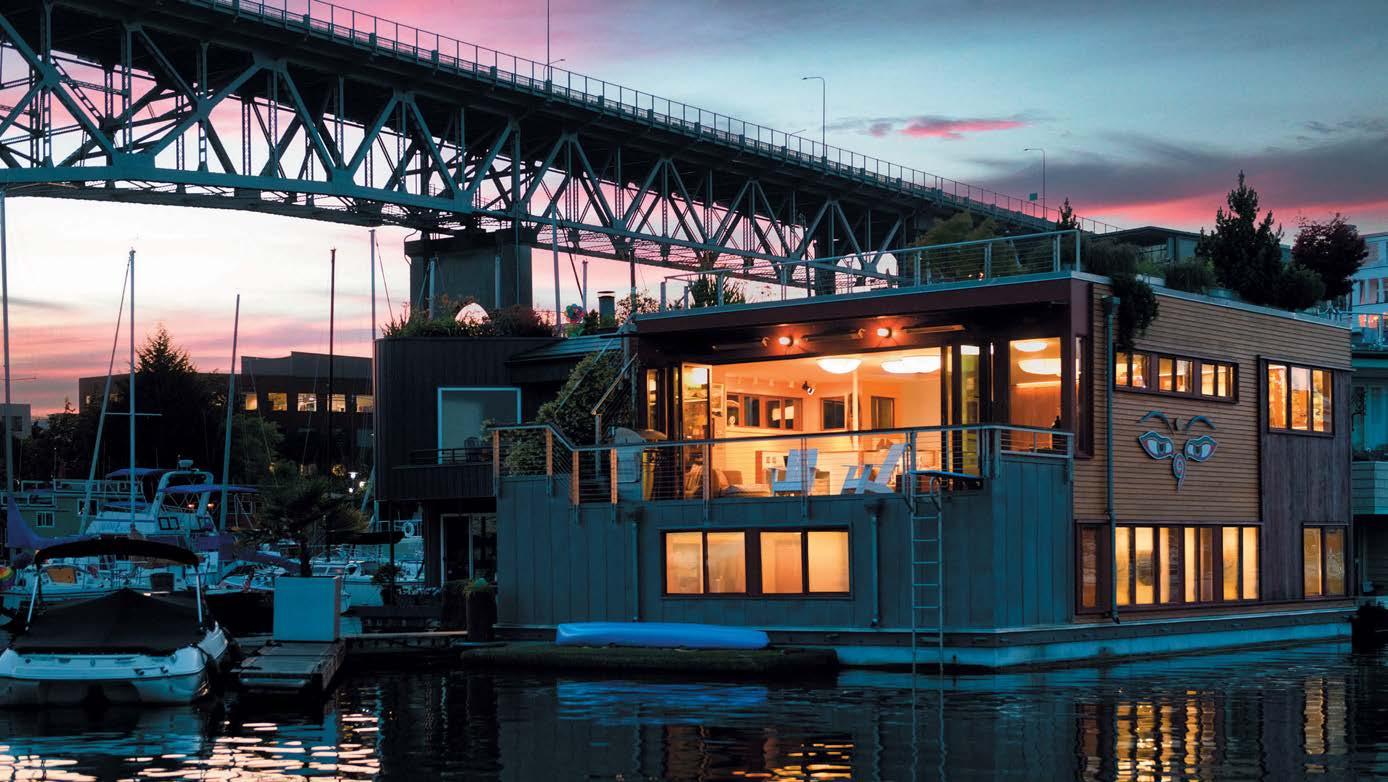 Inspired by the site’s views of Elliott Bay shipping lanes and the constant choreography of cargo cranes across the sky, they envisioned a form something like stacked freight containers. They avoided using the real thing as “that poses serious limitations,” John notes. “But we took the same concept of sliding boxes and extruded it into our own design.”