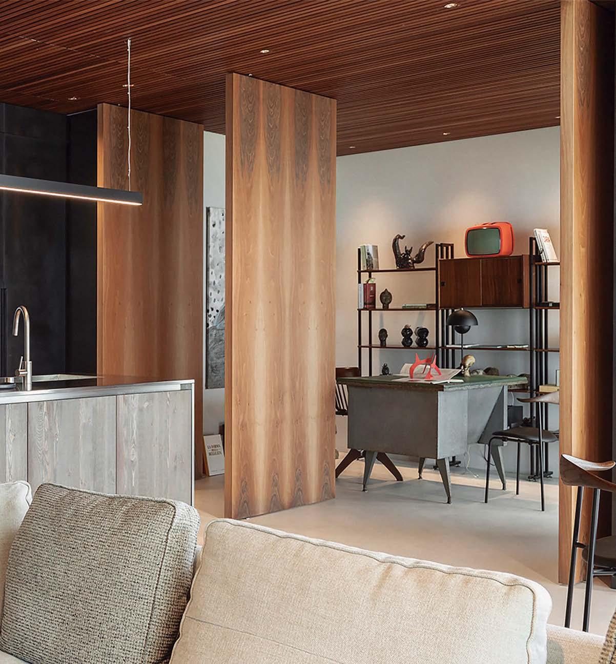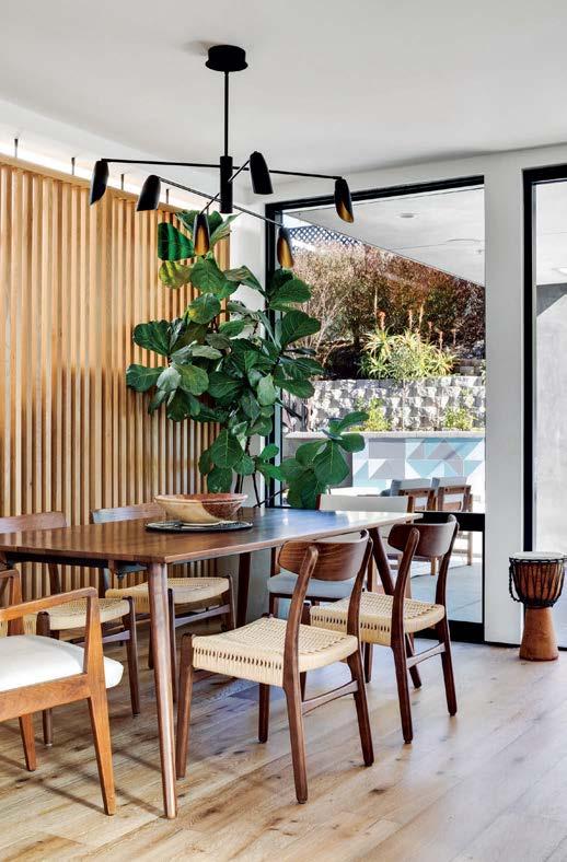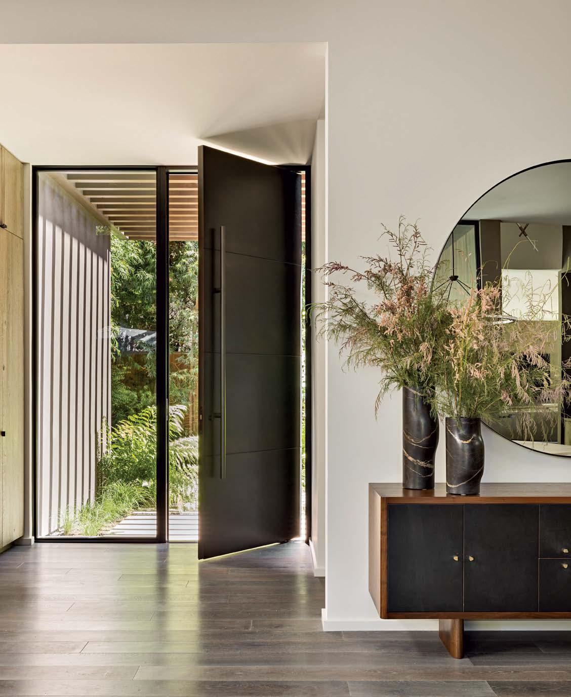 ome neighborhoods are synonymous with a certain kind of understated cachet. Rustic Canyon, a verdant nook where Santa Monica meets Pacific Palisades, quietly enjoys an outsize share of architectural acclaim. There, a striking retreat makes its own singular statement. “It’s a contemporary home designed to be transparent and open, thanks to materials like weathered wood, dark plaster and green roofs that relate to the canyon environment,” architect Ron Radziner says. Upon purchasing this abode designed and built by Marmol Radziner, its owners invited the firm back to tailor it to their taste, tapping their longtime designers Shannon Wollack and Brittany Zwickl to customize and furnish the interiors in tandem.