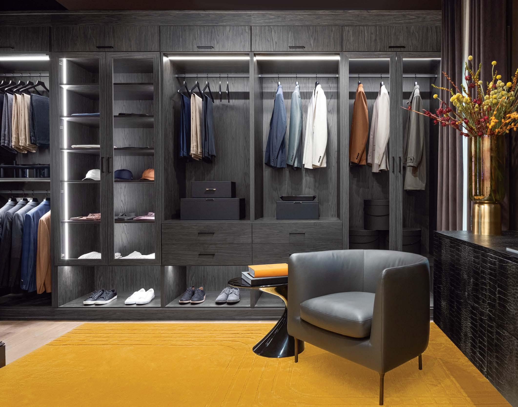 Designer Huma Sulaiman partnered with The Container Store to create a modern gentleman’s space for Kips Bay Decorator Show House. The striking result featured glass-front cabinets and a floating credenza wrapped in recycled leather. To discover the potential of your space, start with a free design consultation.