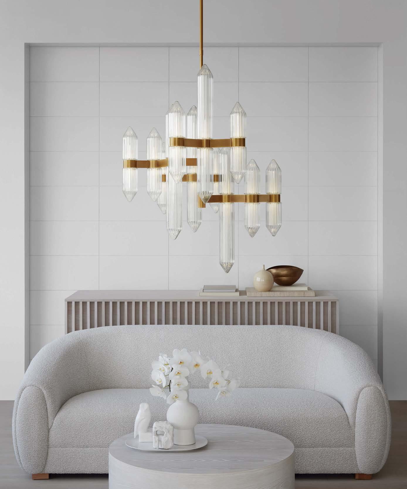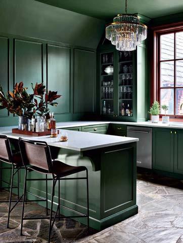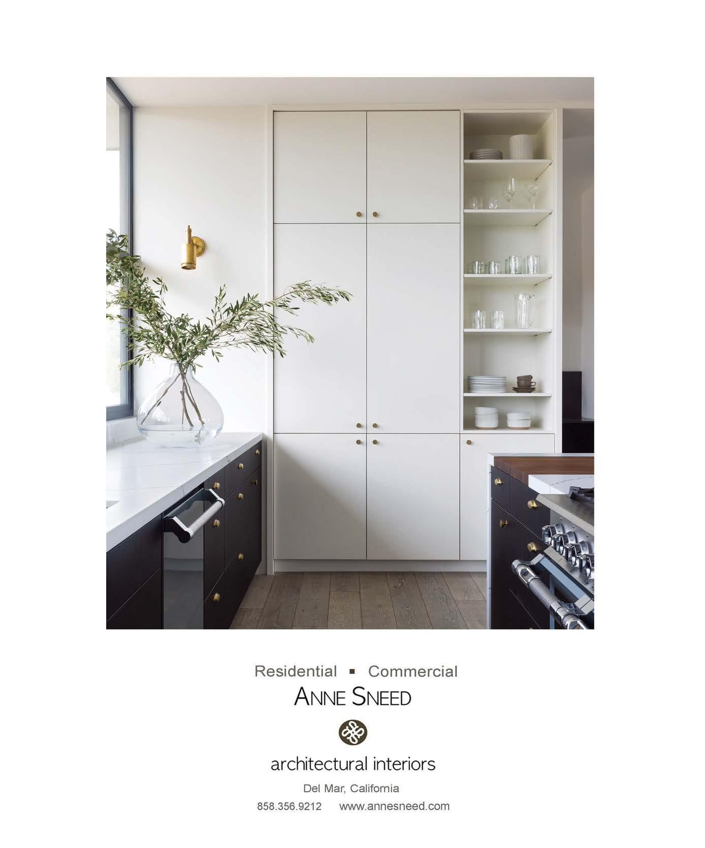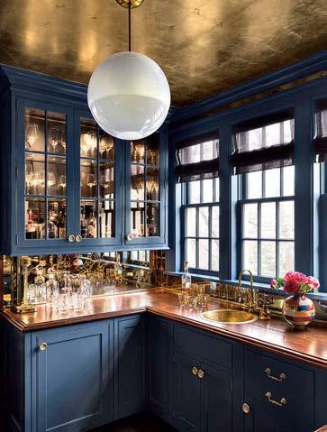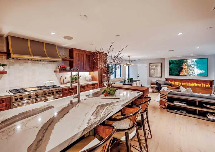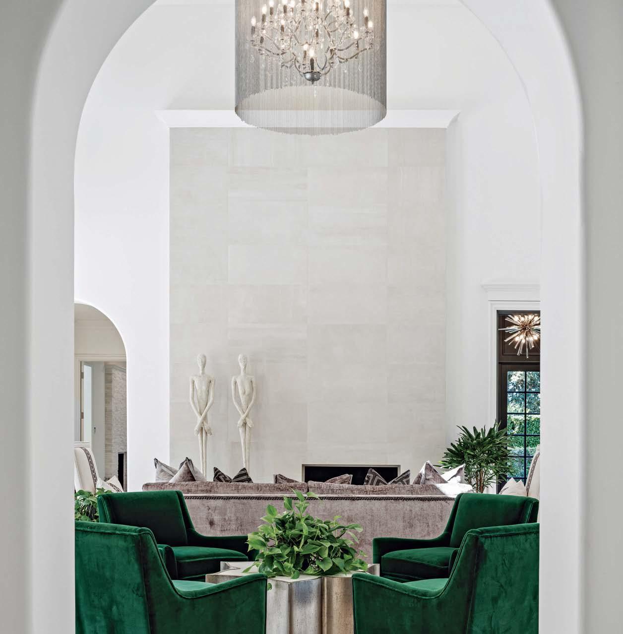 ON THE COVER: To give a Rancho Santa Fe abode’s living room a loungelike vibe, designers Deborah Costa and Kristine Renee dreamed up a central arched bar with Ann Sacks tile on the backsplash, complemented by curved custom sofas in a Peter Dunham fabric and a Noir coffee table. A sea-grass Rush House rug grounds the tableau. Page 210