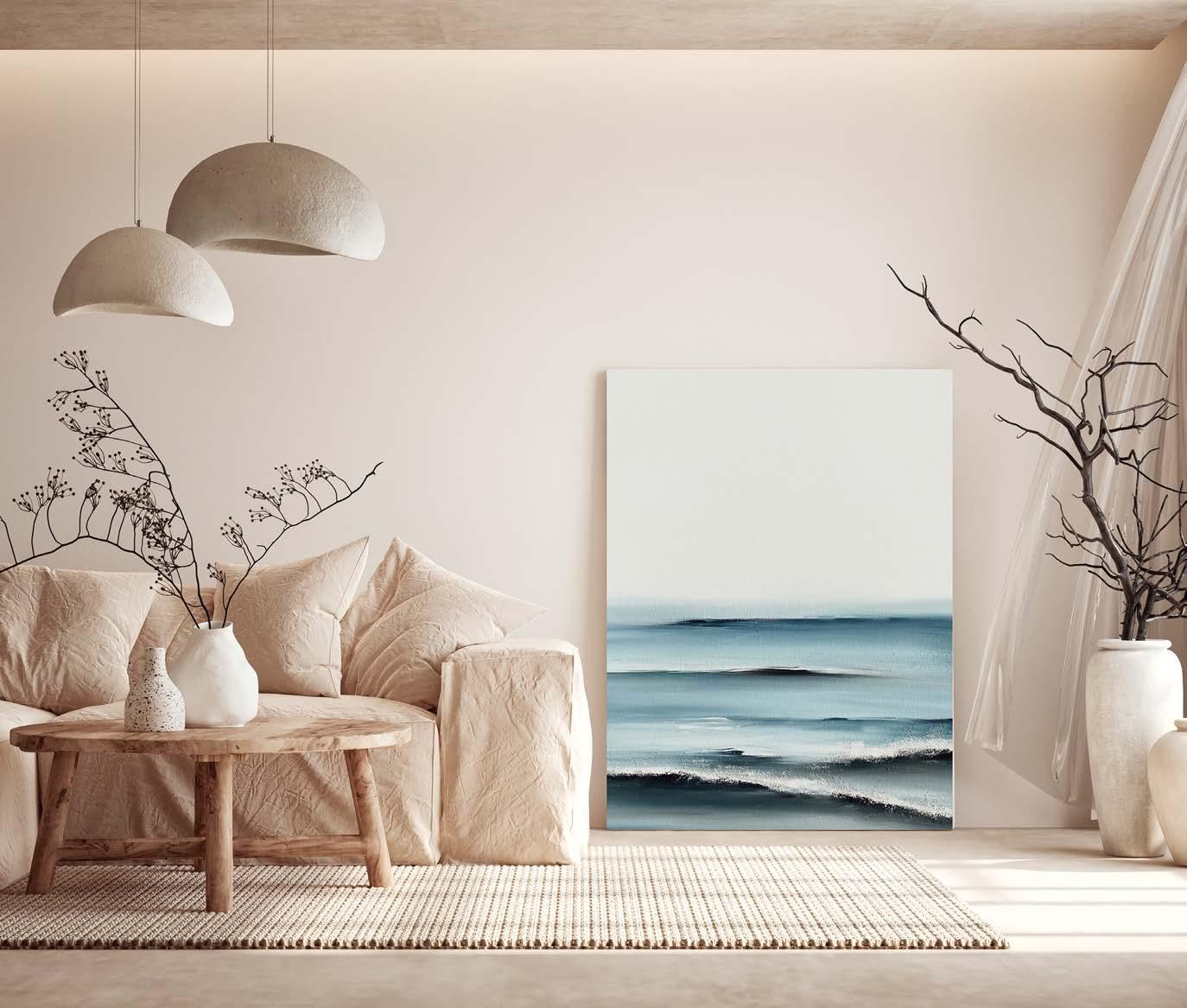 As the interiors approached completion, the designer turned her focus to wall spaces in need of artwork. And as luck would have it, paintings with a particularly special provenance suddenly materialized. One evening the husband showed Robe several of his father’s contemporary works—a painter in India, he had recently passed away, bringing his art into his son’s possession.