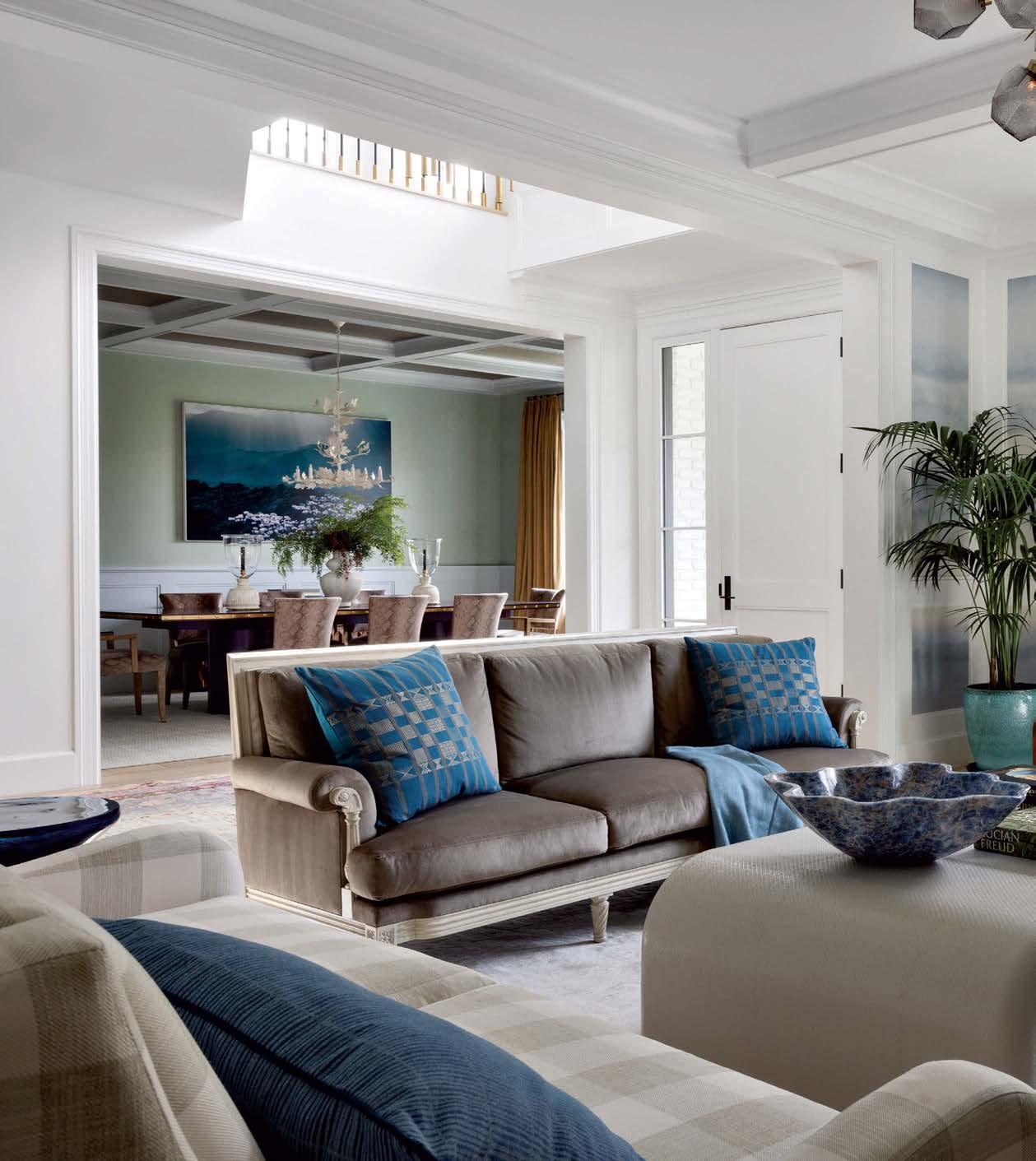 Throughout the home, the designers selected statement furnishings that convey a certain dignity yet are clearly intended to be used. Seating, in particular, needed to be “comfortable and approachable for the family,” Zwickl says.