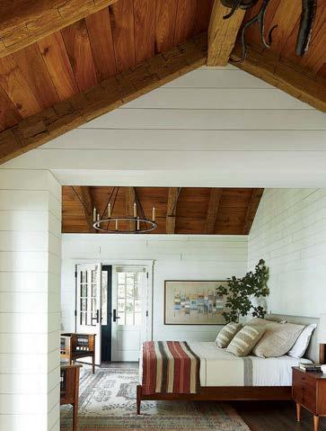 Above: “We wanted this room to feel open, Zen and calm,” designer Brittany Zwickl says of the owners’ bedroom. The coverlet is from Pat McGann Gallery and the bespoke bench is dressed in Thomas Lavin linen.