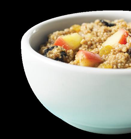 Hearty oats mixed with quinoa create a fiber-rich breakfast, with oats plus quinoa.