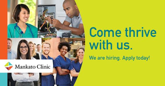 Mankato Clinic is hiring. Visit mankatoclinic.com/join-our-team