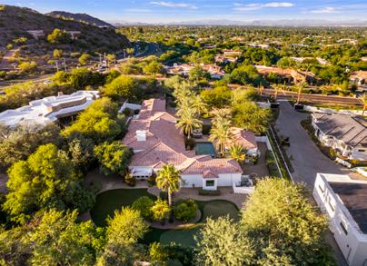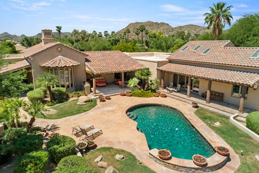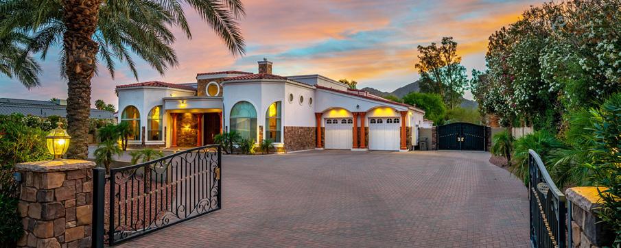 Phil Tibi GROUP (602) 320-1000 ArizonaBiltmoreRealty.com PHIL TIBI MBA, GRI, CRS, CLHMS Associate Broker CENTRALLY LOCATED IN PARADISE VALLEY — at just under 10,000 square feet, this expansive 2-story estate sprawls out over 1.1 acres. With eight bedrooms and eight and a half bathrooms, this is truly an estate. No luxurious detail has been spared, featuring a library, den/office, sunroom, gym, theater, and your very own elevator. Gated motor court accented by towering palm trees and mature easy-to-maintain foliage. As you enter the threshold and step into the grand foyer, you will be awed by pillared accents and custom flooring throughout. Magnificent living room features a crown jewel of a fireplace, oversized windows, and beautiful crystal chandeliers throughout. 5518 N QUAIL PLACE, PARADISE VALLEY OFFERED AT $5,200,000 STUNNING MEDITERRANEAN ESTATE CAMELBACK MOUNTAIN VIEWS LuxuryHomeMagazine.com | 59