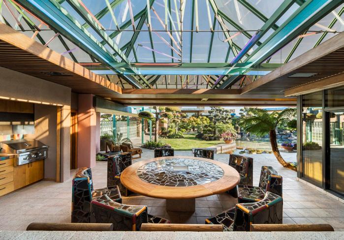 A MASTERPIECE OF DESIGN , artistry, and luxury inspired by Frank Lloyd Wright’s Fallingwater, gated estate on a most prestigious lot designed by Doug Dahlin and built for the late Ken Behring, Blackhawk developer. Panoramic views, openconcept floor plan, and an extraordinary event venue, a 7,000± SF ballroom with drive-in access. Steve Chase’s interior design comprised of Idaho quartz, Brazilian teak ceilings, and Utah flagstone. Opulent primary suite and a retractable ceiling in spa-inspired en suite. 10,000-bottle wine cellar. Kimio Kimura’s landscape design integrates indoor/outdoor. Waterfalls, Koi ponds, pool/spa, kitchen/dining pavilion, and a tennis court. Two one-bedroom/ one-bath apartments. 4 car garage and 3 carports. Near 2 golf courses, clubhouses, sports complex, and top-rated schools.
