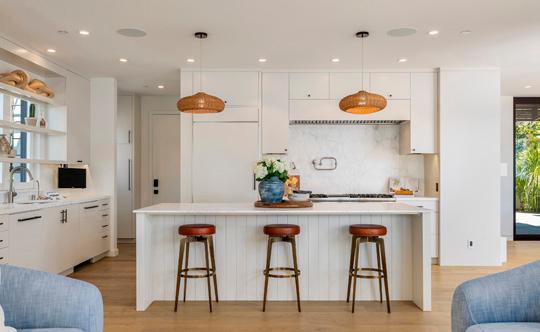 This extraordinary four bedroom plus office, three and one half bathroom residence spans over 5,800 square feet, blending contemporary architecture with an open living concept. Expansive walls of glass flood the home with natural light, seamlessly connecting the indoor and outdoor spaces for an airy, open feel. The sleek chef’s kitchen is equipped with top-of-the-line appliances, custom-built cabinetry, and a large island featuring a salad sink and eat-in dining area, perfect for both casual and gourmet entertaining. Located on a one acre lot overlooking Roundhill Country Club, the property offers ample room for a detached ADU and a pool.