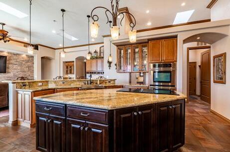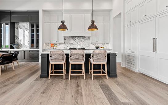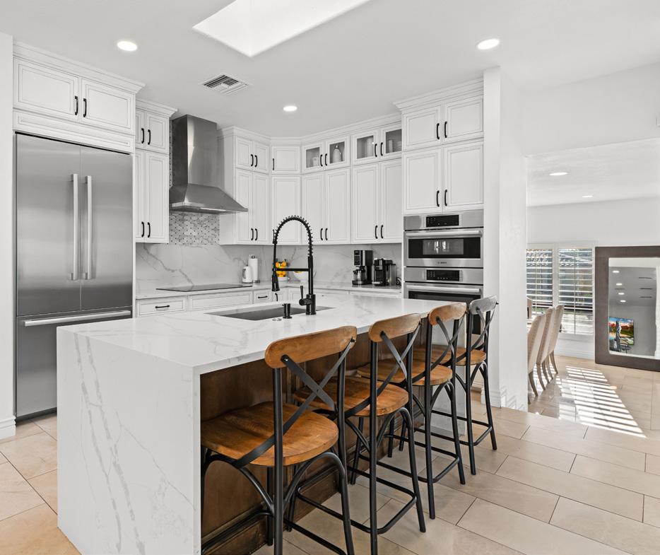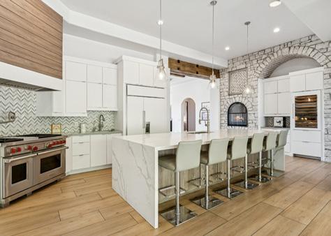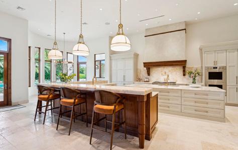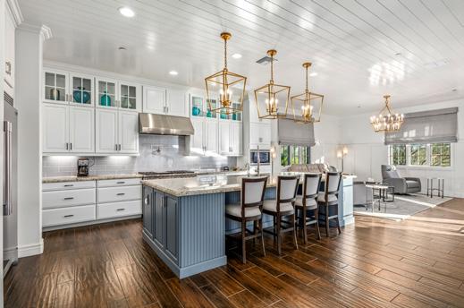 Developed by Tiara Sun Luxury Homes, with architecture by Jim Blochberger and interiors by Evon Fig Interiors, the home blends timeless craftsmanship with modern luxury. Features include wood plank ceilings, a double-island gourmet kitchen with dirty kitchen, and today’s essential wellness components.