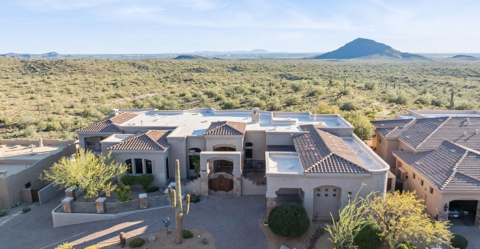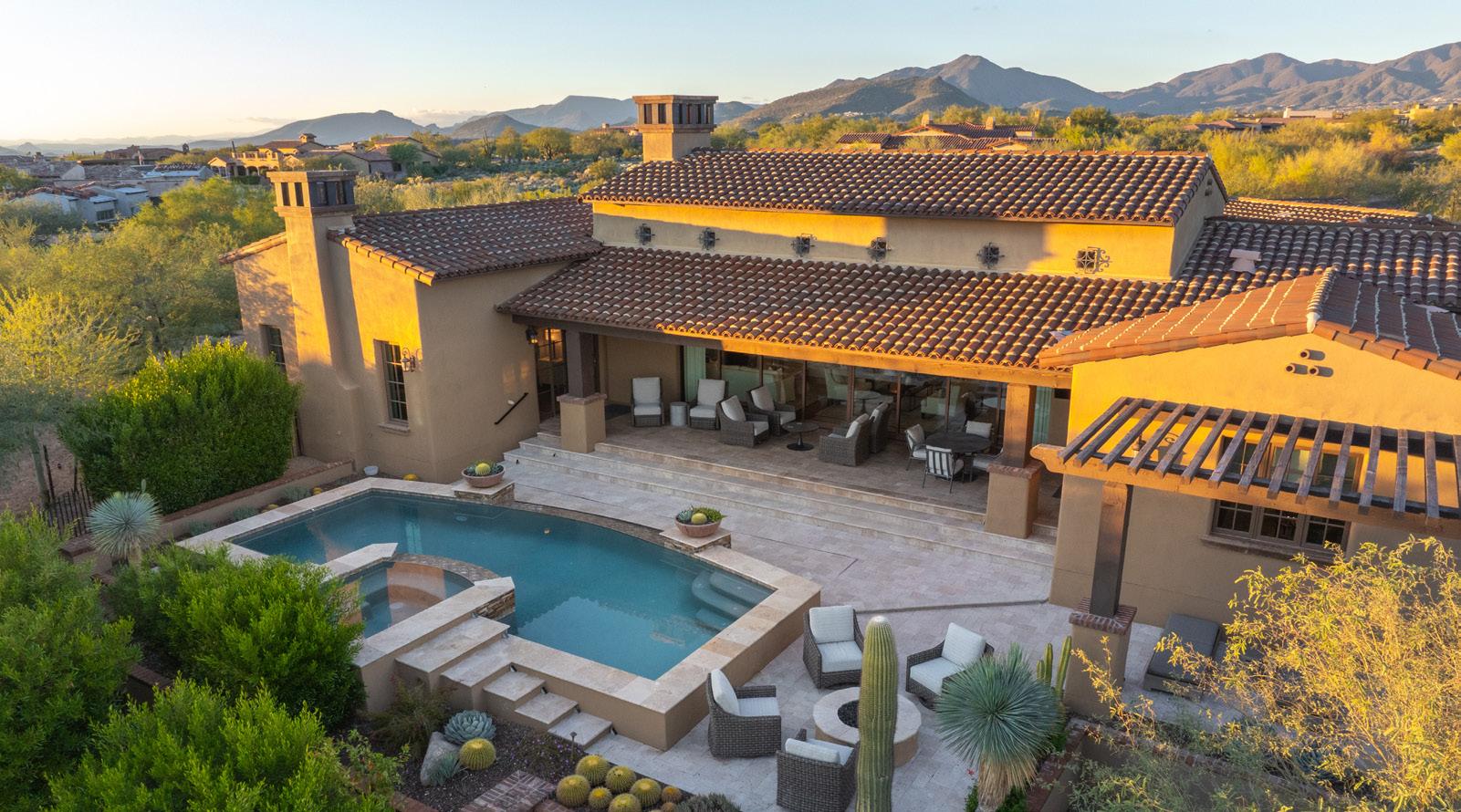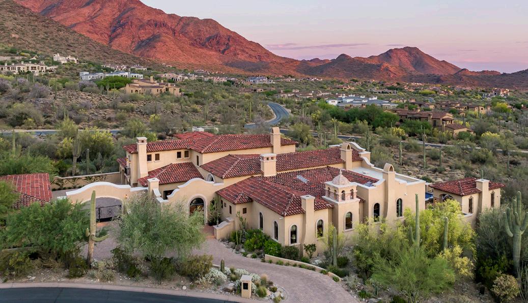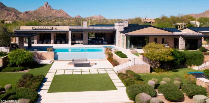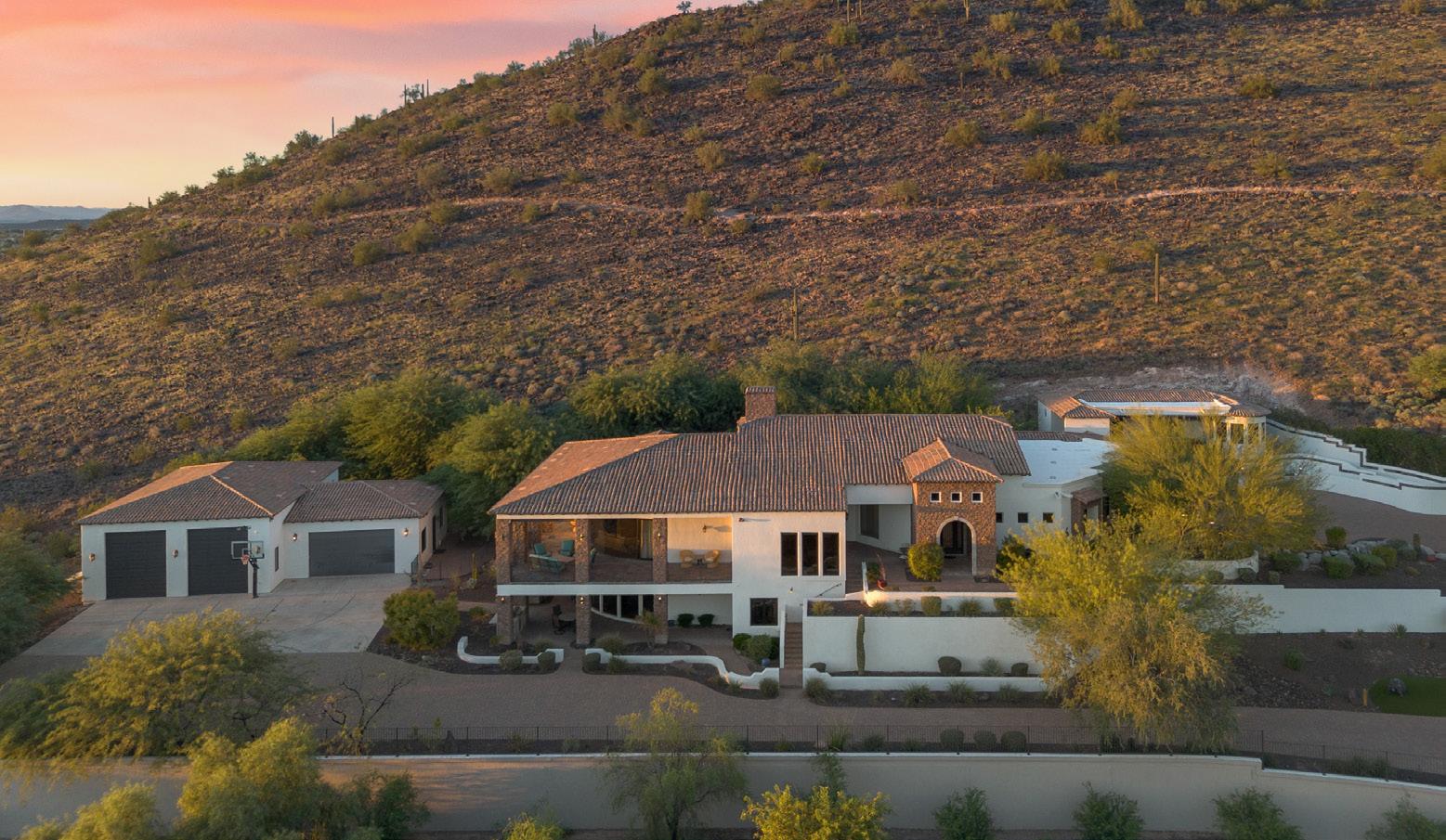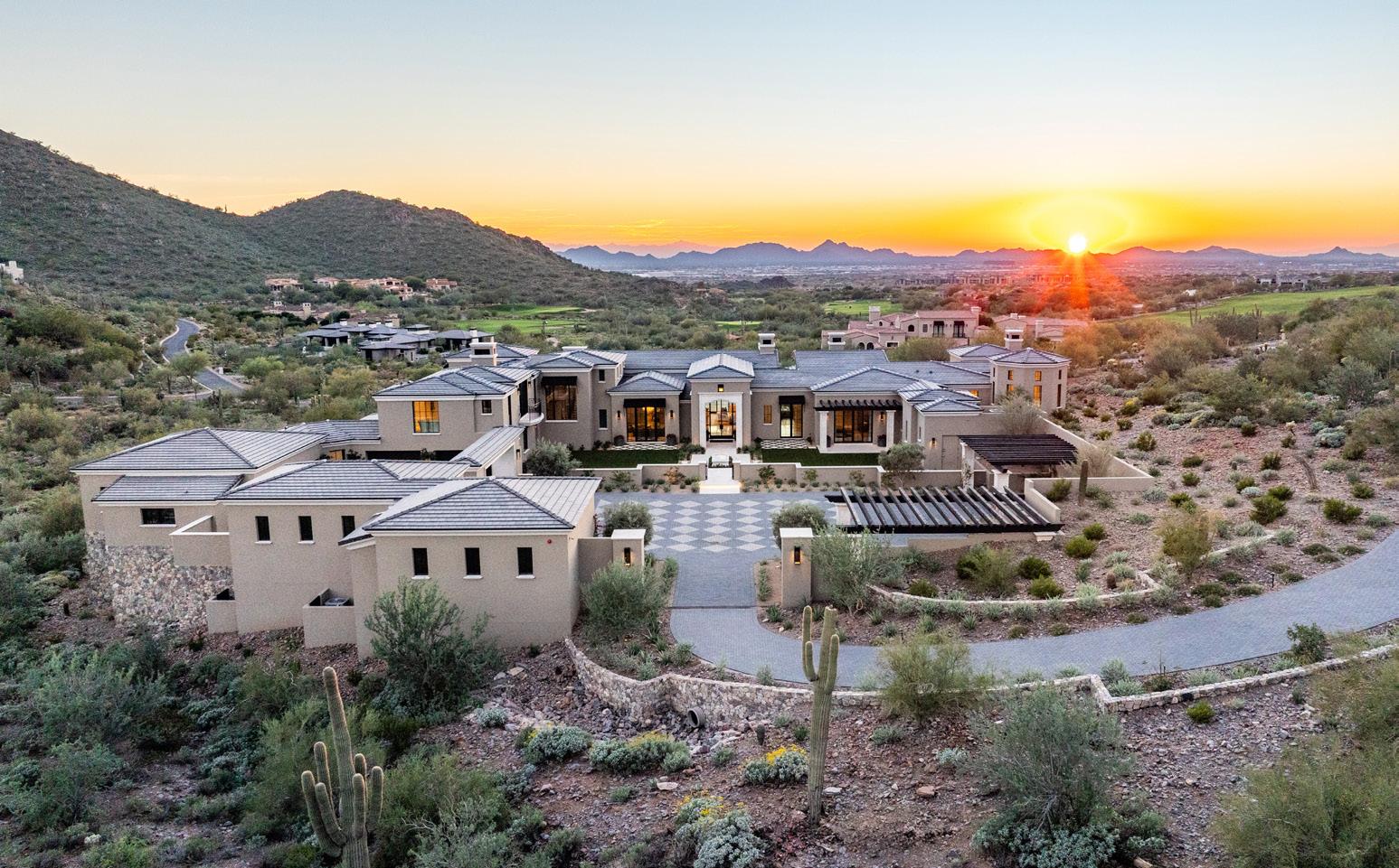 The residence offers 7,238 square feet of living space and 9,544 square feet under roof, designed to elevate Arizona’s indoor-outdoor lifestyle. Highlights include six ensuite bedrooms, a separate guest house, resort-level wellness amenities, heated pool, and sweeping mountain views.