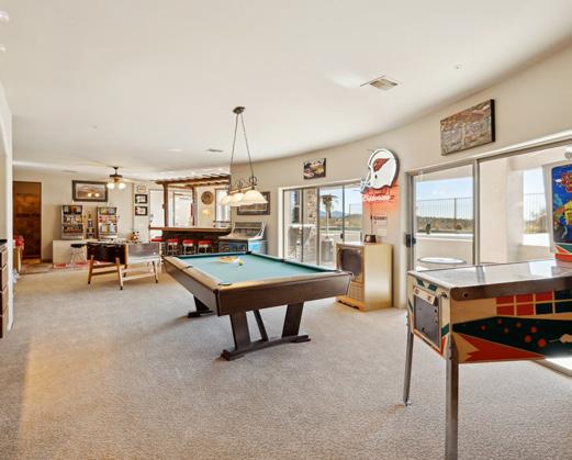 Outdoors, a resort-style oasis awaits—highlighted by a negativeedge pool and spa, fire features, cascading water elements, and a meandering lazy river framed by natural boulders. A rooftop viewing tower captures sweeping sunsets and star-filled skies, while a climate-controlled eight-car garage with RV access completes this exceptional offering.