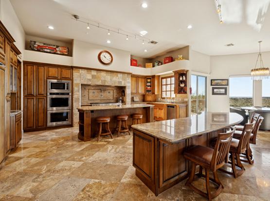 15105 E CAMELVIEW DRIVE, FOUNTAIN HILLS | Stunning custom home perched overlooking the entire Valley of the Sun in the guard gated community of Eagle Mountain. This home provides the ultimate retreat with privacy and protected panoramic views. Bring your toys! There’s a full RV Garage with 12 x 14 ft door and two additional garages. Guests will enjoy the lovely private casita with fireplace and kitchen. There are 4 bedrooms, 4 1/2 baths, 3 fireplaces and a beautiful 2-person executive office with built-ins. The Chef’s kitchen features 2 granite islands, separate refrigerator and freezer, 6 burner natural gas Wolf cook top and Oh! Those views from Camelback to Red Mountain! Walkout lower level offers an entertainers dream: Billiards/game room, theater, bar area and kitchen, with access to the pool area and swim-up bar.