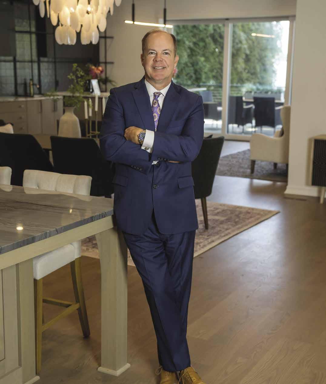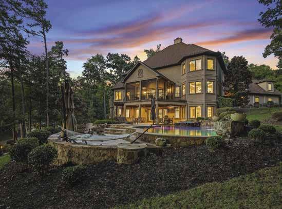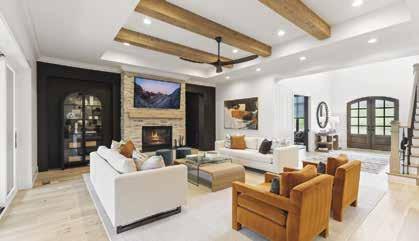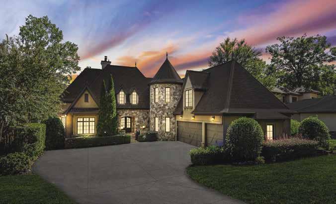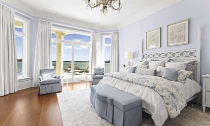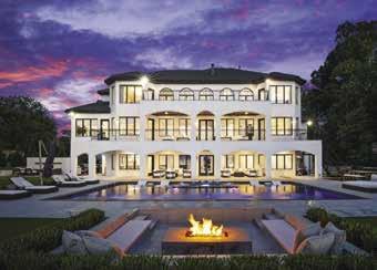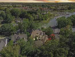 fence for privacy. As you enter the home, you’re greeted by a grand two-story foyer and wide plank, white oak floors throughout the first and second levels, as well as nine-foot solid white oak interior doors. The gourmet kitchen is perfect for entertaining with dual-islands, Sub-Zero refrigerators, Wolf range with dual ovens, butler’s pantry and scullery. The primary suite provides panoramic windows for long-range lake views, a gas fireplace, dual walk-in wardrobes, and a luxurious en-suite bathroom. Enjoy spa like relaxation in the primary en-suite with dual vanities, a free standing soaker tub, expansive walk-through shower, and marble floors. Entertain guests in the finished basement complete with direct access to the lake and pool, a rec room, wine cellar, golf simulator suite, sauna, gym suite, expansive family room, and fully appointed gym. Other amenities include a saltwater infinity pool with spa and gas fire pits, grilling veranda, expansive covered outdoor living space, private dock with dual-slip boat dock, and an oversized four-car garage with ten-foot doors.