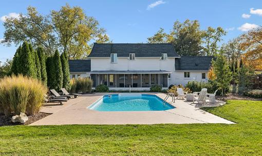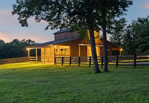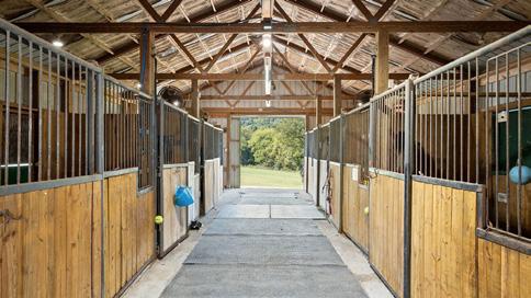 Equestrian enthusiasts are catered to with a sixstall barn, complete with tack and feed rooms. An attached man cave—known affectionately as The Saloon—offers a bedroom, full bathroom, living area, kitchenette, and geothermal HVAC, ensuring comfort for guests and family alike. Additional