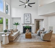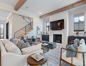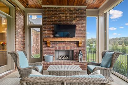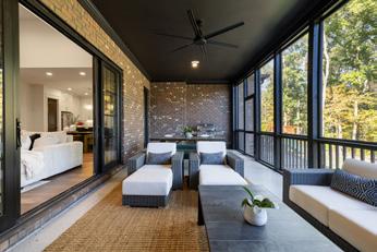 5 BED / 5.1 BATH | 4,785 SF | From the striking entrance, front porch with amazing views, to the custom iron-and-glass entry door, every detail reflects thoughtful craftsmanship & modern sophistication. Inside, soaring ceilings & curated finishes create a sense of modern elegance throughout the home. Every finish has been thoughtfully chosen to combine style w/function. At the heart of the home, the expansive great room features a gorgeous fireplace flanked by built ins & a wall of glass that opens to a screened outdoor living room that overlooks the private backyard & wooded common area beyond.