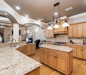 In the guard-gated golf course community of the Governors Club. Two-story family room with fireplace and built-ins opens to a covered porch. Chef’s kitchen with an open concept to the family room. Basement has media room (screen conveys), exercise room, large den w/ fireplace & walk-out access, guest BR suite, flex room, kitchenette, additional den w/ built-ins, storage, & storm shelter. Basement level is perfect for an in-law suite. Governors Club amenities include 24-hour gate security, community pool, fitness center, 2 tennis courts & access to the Pleasant Hill mansion. Truly resort-style living.