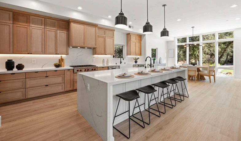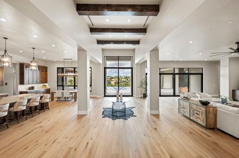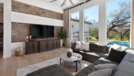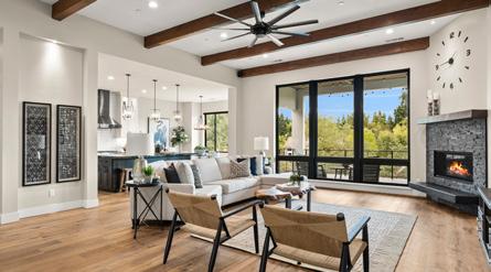 FROM NCO DEVELOPMENT in one of Truckee’s most coveted neighborhoods, this new home will be wrapping up in mid-December! Located on a level and sunny lot, this rare, onestory home backs up to the 14th hole of the Gray’s Crossing golf course. With just over 3,500 sq ft of living space and over 500 sq ft of covered patio spaces, this new construction features a grand entryway, 4 ensuite bedrooms, a powder bath near the openconcept great room, a laundry room, theatre and 3-car garage. The chef’s kitchen is wrapped in walnut, featuring a large, waterfall island and Thermador appliances. The bathrooms are encased in limestone and marble, while the great room fireplace is clad in local granite, coordinating with the exterior stone columns and barrel-roof entry. Come see the craftsmanship and thoughtful design for yourself!