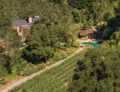 Set within a cypress forest that envelops the property and its structures, the filtered ocean light creates a calming, almost surreal atmosphere. Over 150,000 pounds of mosscovered boulders, floating flagstone steps, and winding footpaths invite quiet exploration of the gardens and seaward views. Approximately three miles from the acclaimed Soberanes Redwood Canyon and the white-sand beaches of Garrapata, and less than a mile south of Point Lobos State Park’s dramatic coastline— described by oil painter Francis McComas as “God’s greatest meeting of land and sea.” The estate is also less than four miles north of the town of Carmel-by-the-Sea, and merely 15 minutes from Pebble Beach Resort and its world-famous golf courses.