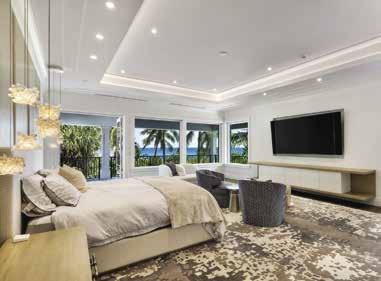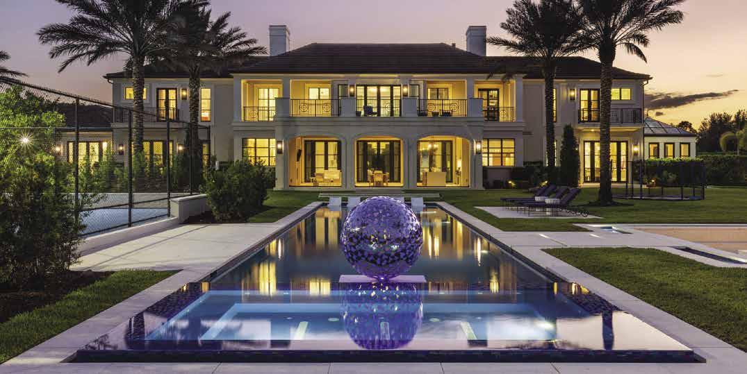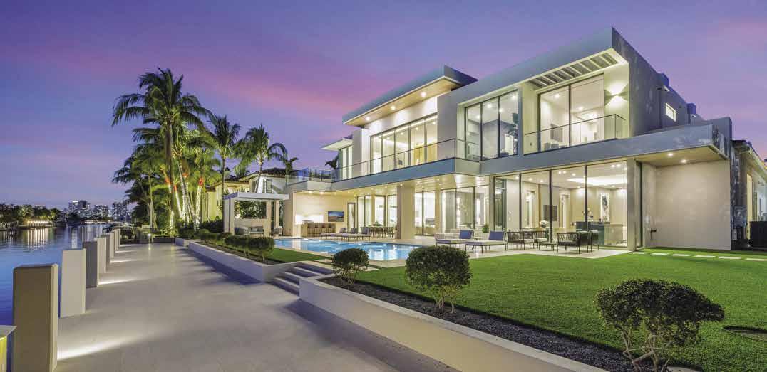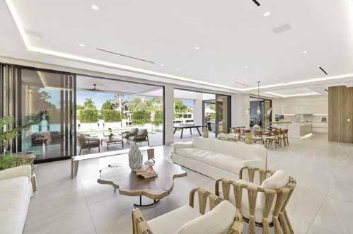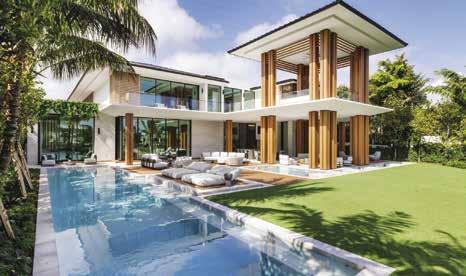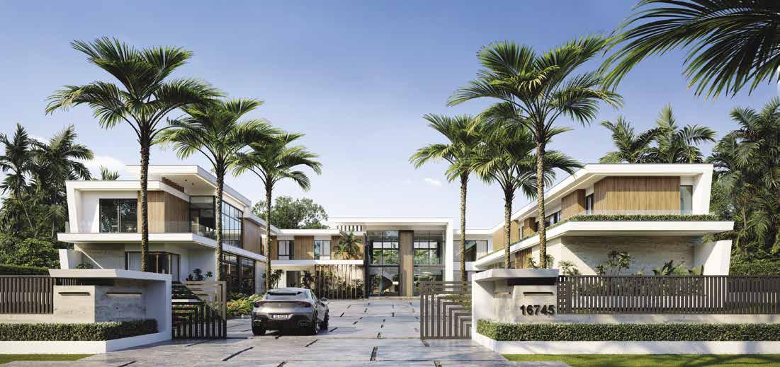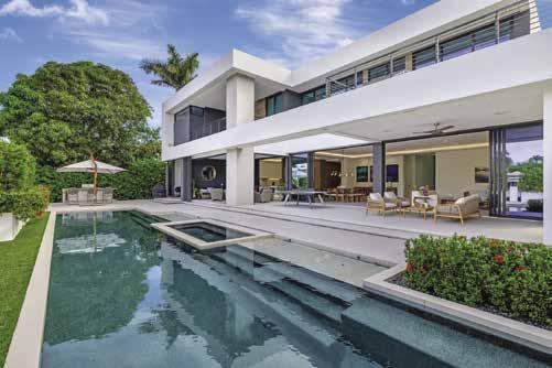 The gourmet chef’s kitchen is a work of art, featuring custom cabinetry, top-of-theline appliances, spacious walk-in pantry, catering scullery; and a seamless flow into the expansive living and dining spaces which are showcased by a stunning glass wine cellar. Perfect for entertaining, the indoor-outdoor integration opens to multiple terraces, a resort-style pool, and private lounge areas that embrace Florida’s lifestyle year-round. The owner’s suite is a private sanctuary, complete with private sitting areas, expansive terrace, 2 spa-like bathrooms, dual designer closets, and sweeping panoramic views. Additional guest suites are designed with luxury and privacy in mind, while flexible spaces allow for a home office, fitness studio, or media room. A 4-car garage offers ample space for the automobile enthusiast, complemented by clean architectural lines and a modern façade that make a powerful statement from the moment you arrive.