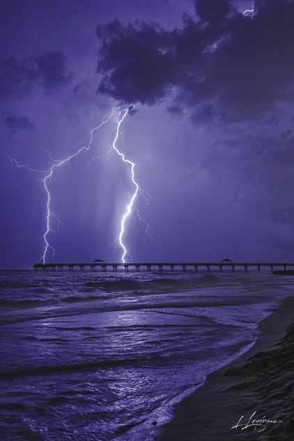 One that stands out is Electric Night, the lightning shot over the pier. I was the only one left on the beach—everyone else had run for cover, but I couldn’t leave. I’d been chasing this shot for a while. I set up my tripod low with a rain sleeve over the camera, then stepped back about 25 feet, watching it like a hawk as the tide crashed in. Since it was the only tall metal object around, I wouldn’t stand next to it. At times I even lay flat in the sand, hoping it lowered my chances. Then it happened—a white-out bolt so bright the world vanished. The thunder shook my chest, and only the camera revealed it had lined up perfectly with the pier. My hands were still shaking as I stared at the shot.