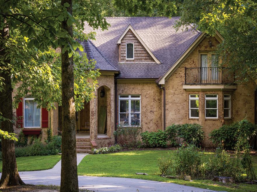 designed by an artist, this beautiful French country inspired home is hidden among the trees in Leipers Fork. A dream for anyone who loves nature, this home features a permaculture garden, an herbal medicine garden, a chicken coop, and a new custom-built playhouse for kids. A new twolevel back patio is the perfect place to soak in the serenity of the surrounding trees. Other features