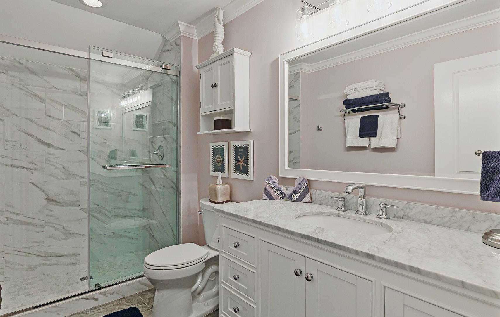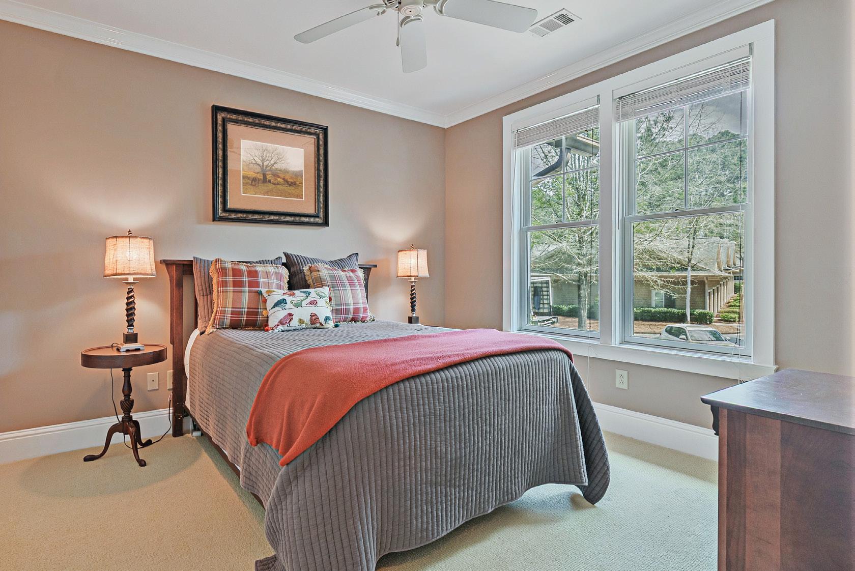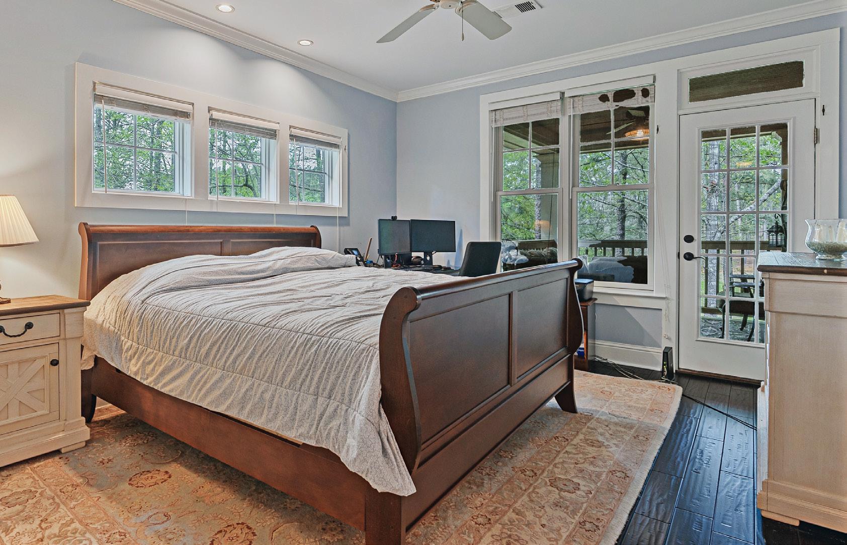 Designed for main-level living, the primary suite is spacious and well-positioned, offering a beautifully updated bath and direct access to the porch. It’s an easy place to start the day or unwind in the evening, with views of the surrounding trees and a quiet creek just beyond. A guest ensuite on the main floor provides comfort and privacy, while upstairs, an additional bedroom and full bath create a separate retreat for guests.