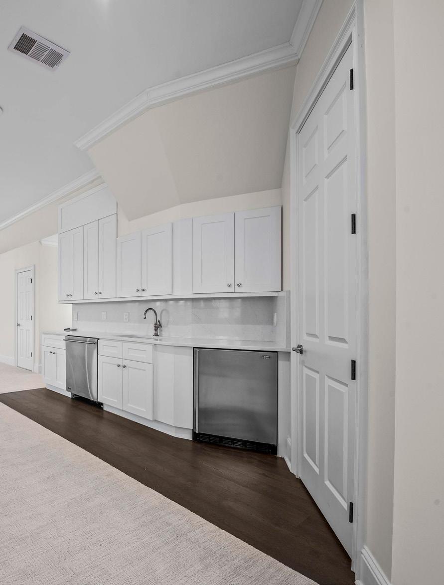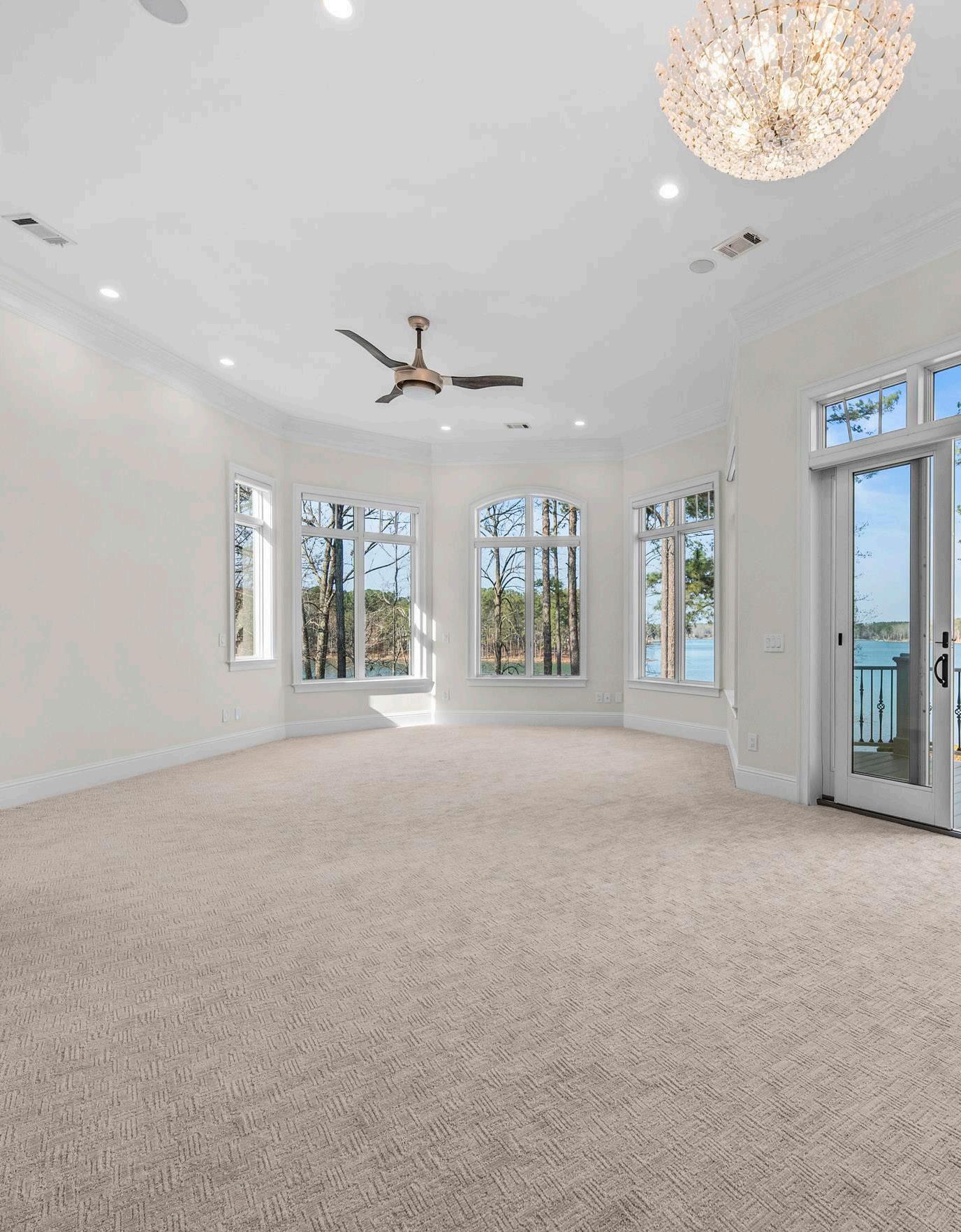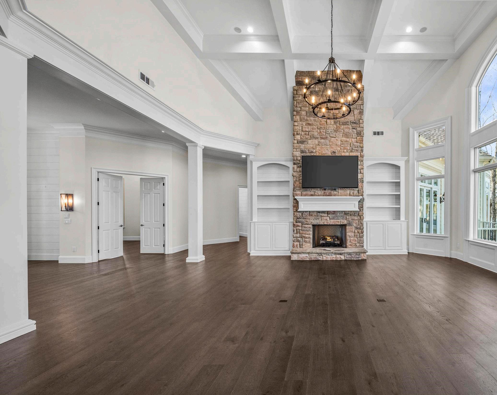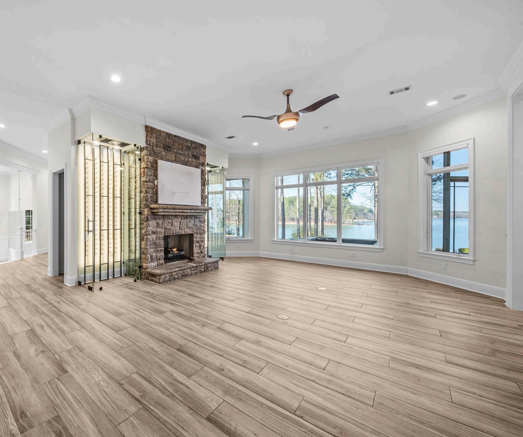 Outside, a screened porch opens to an expanded flagstone patio and a breathtaking lakefront setting with an infinity-edge pool, hot tub, and sculptural fire bowl. From your private dock, hop on your boat or jet ski and reach Gaby’s in minutes. The Lake Club and Richland Pointe are also just moments away by water. A sweeping composite deck captures nearly 280-degree views, while two tiers of manicured lawn step down to the shoreline. Fireworks from The Ritz reflect across the water every Fourth of July.