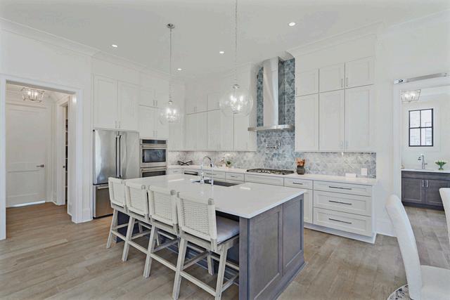 Chef’s kitchen with large eat-in island, premium appliances, and custom tilework