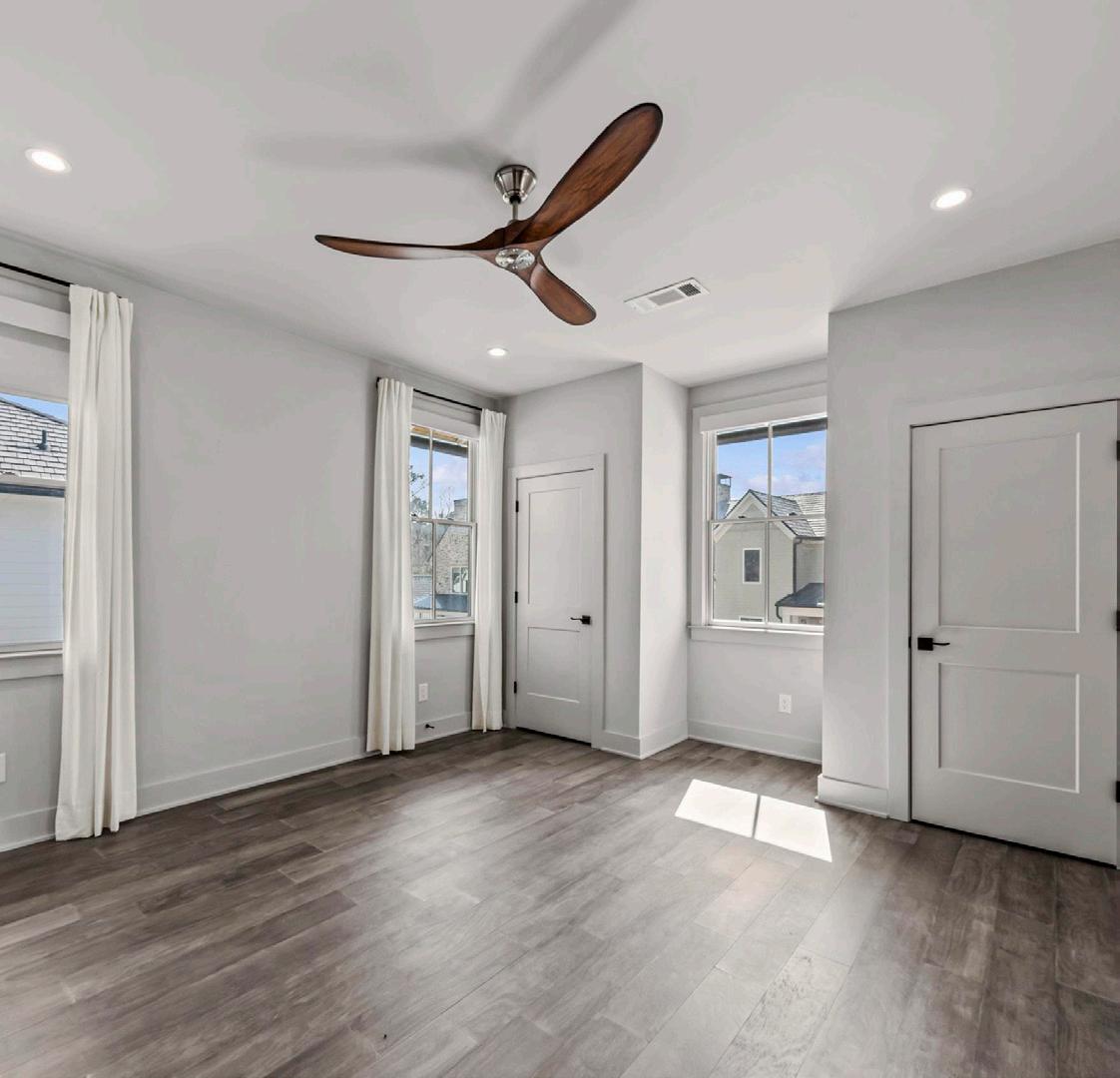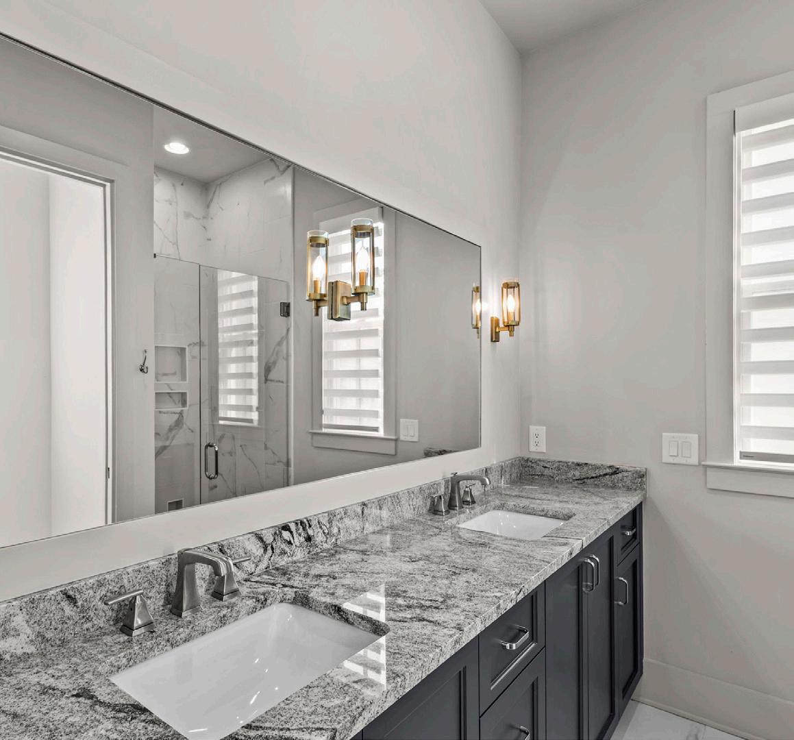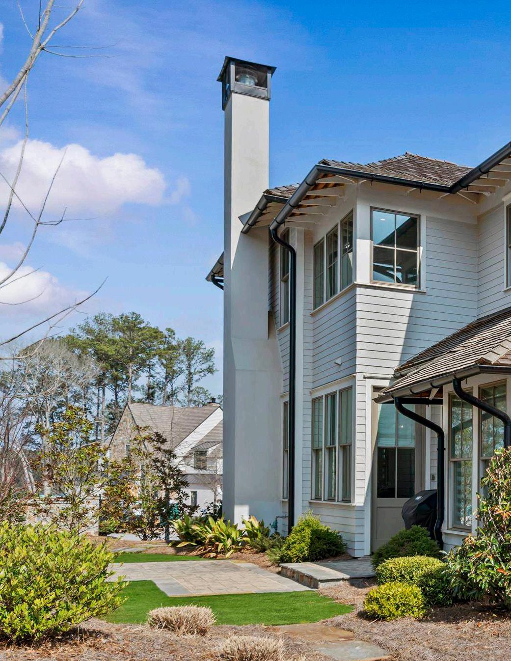 Upstairs, two guest suites each feature en suite baths, offering comfort and privacy for family and guests. Two additional bonus spaces provide opportunities for recreation, a media lounge, fitness, or a dedicated office. A powder bath serves this level for added convenience. An upper-level patio offers the ideal setting for al fresco dining while taking in lake and village views.